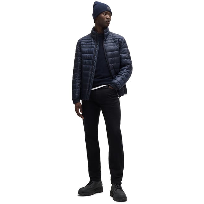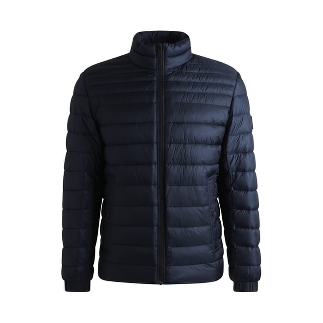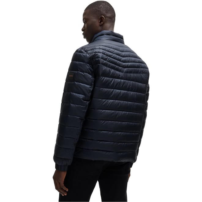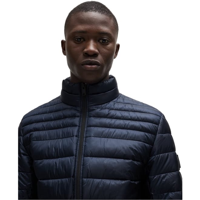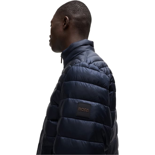 Elevate your outerwear with the Boss puffer jacket. This short, regular-fit design features a mock neck and a solid pattern for a sleek look. The jacket includes a ribbed cuff and a convenient zipper closure. Complete with a distinctive logo patch, it effortlessly combines style and practicality. -