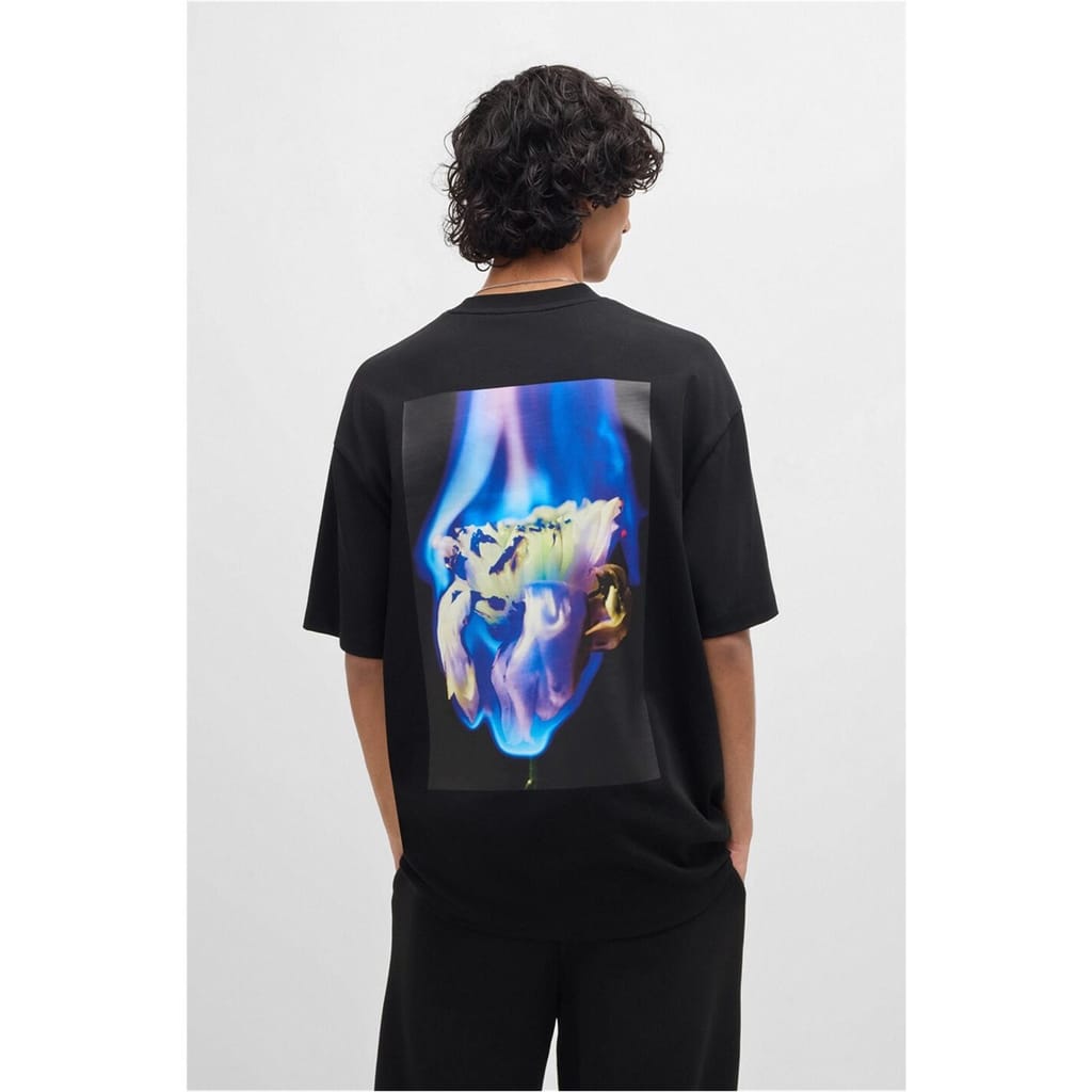 This Hugo t-shirt offers a regular fit with a classic crew neck and short sleeves. It features a striking graphic print and is embellished with the Hugo logo, adding a stylish touch to your wardrobe essentials. -
