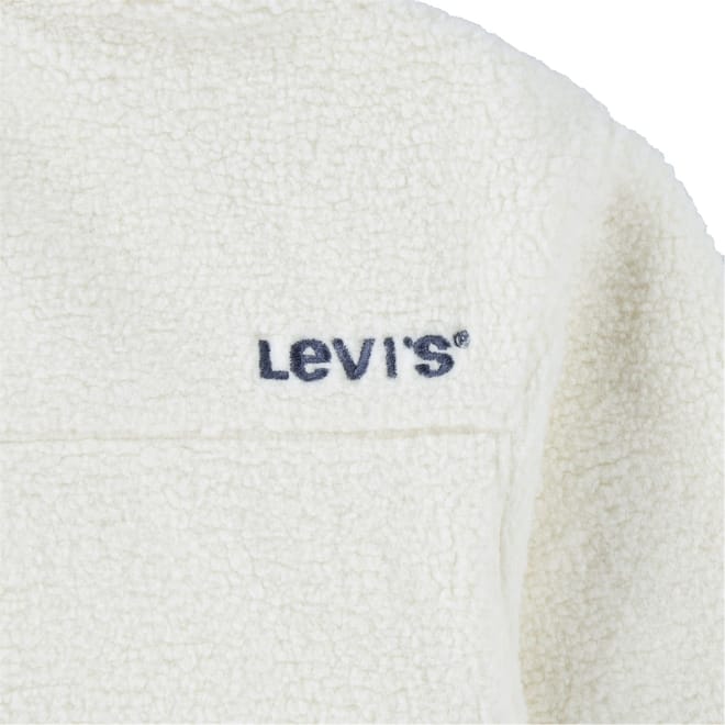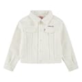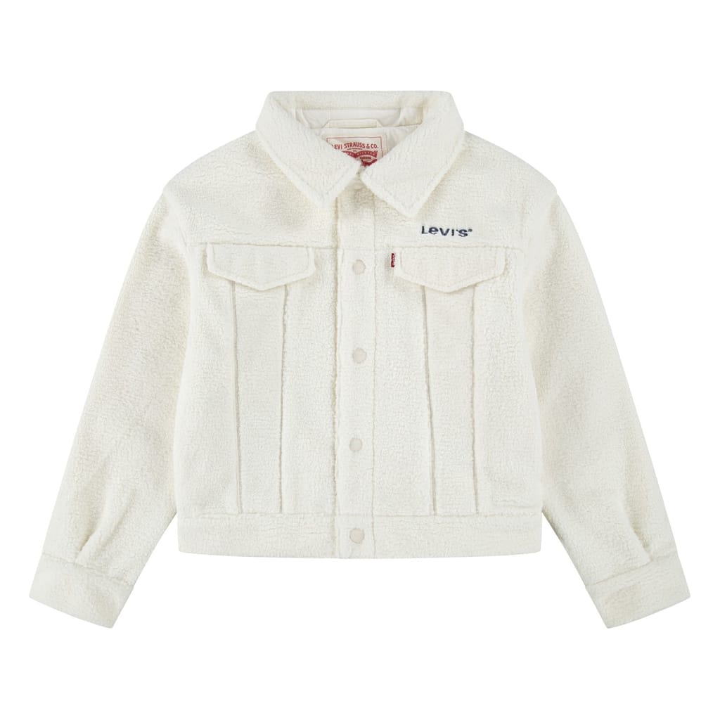 This Levi's trucker jacket features a classic shirt collar and a straight hem. Designed in a solid pattern, it offers a regular fit and a short length. The jacket is equipped with a snap button closure and includes a logo embellishment along with a chest pocket for added functionality. -