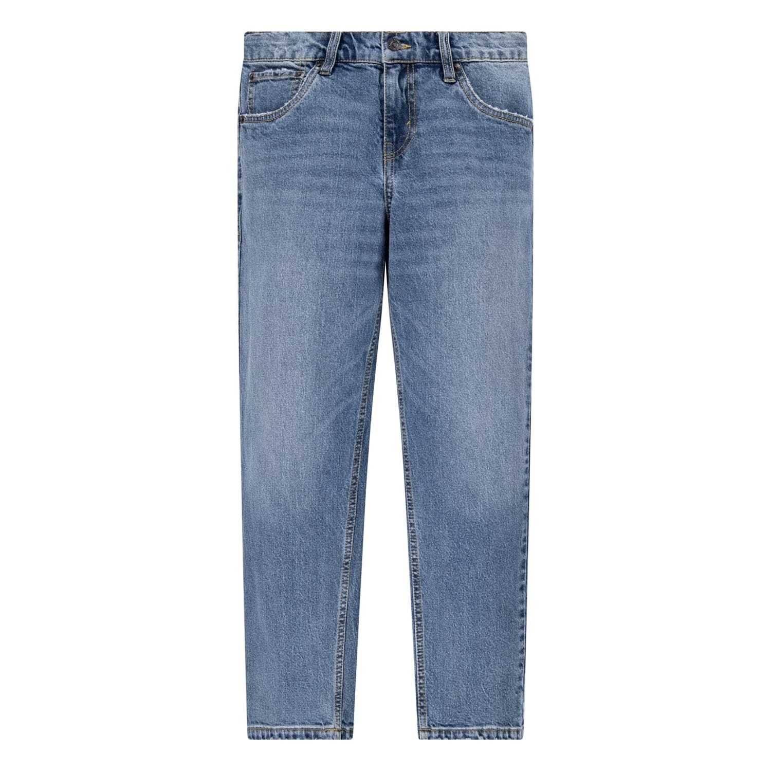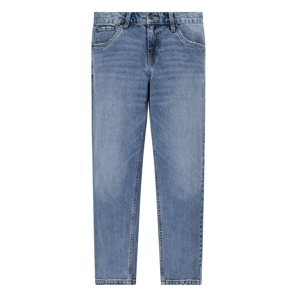 Levi's mom jeans offer a stylish tapered fit, perfect for juniors. Featuring a button closure, these jeans are adorned with a logo and come with practical front and back pockets. A classic choice for those seeking both comfort and fashion. -