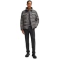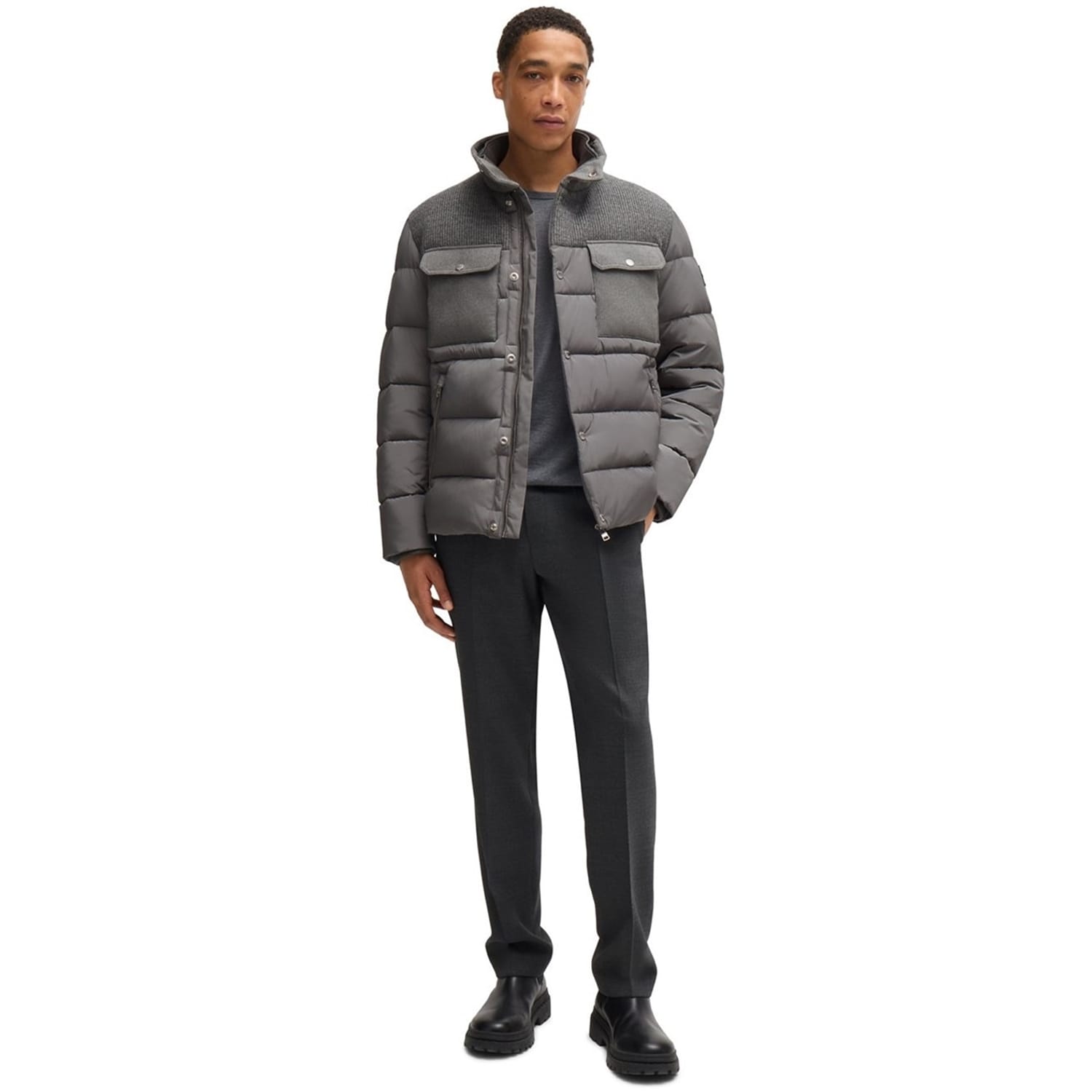 The Boss field jacket is a versatile puffer style, offering a regular fit and solid pattern. Featuring a hooded design, it includes snap button closure for convenience. This stylish short jacket is adorned with logo embellishments and equipped with functional chest and front pockets, combining practicality with classic design elements. -