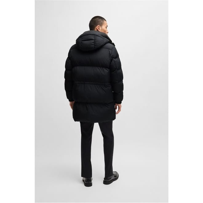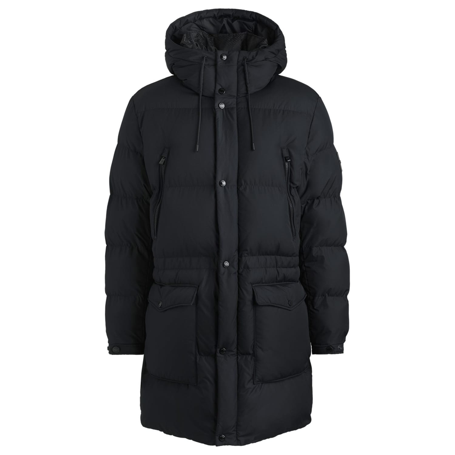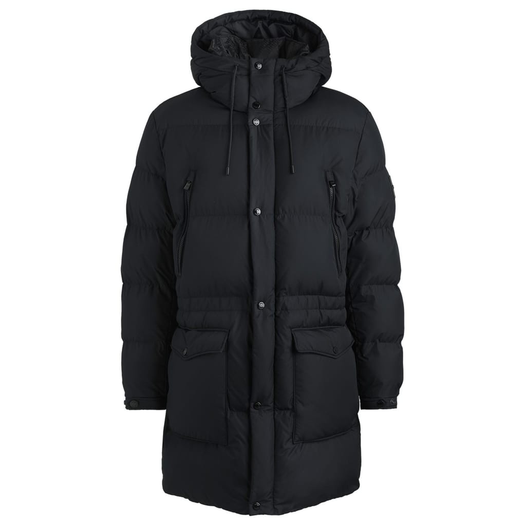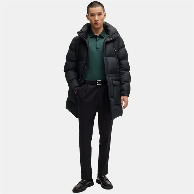 Stay stylish and comfortable with the Boss Parka Jacket. Perfect for both sport and casual occasions, this coat features a hooded design with a solid pattern. The jacket includes a snap button closure and a regular fit, while practical pockets and a subtle logo embellish its sleek look. -