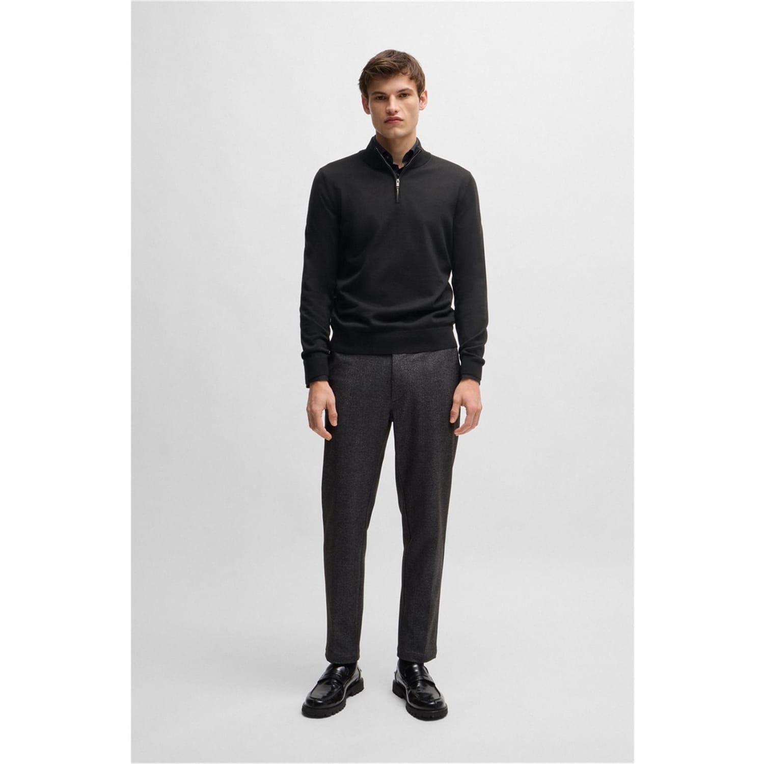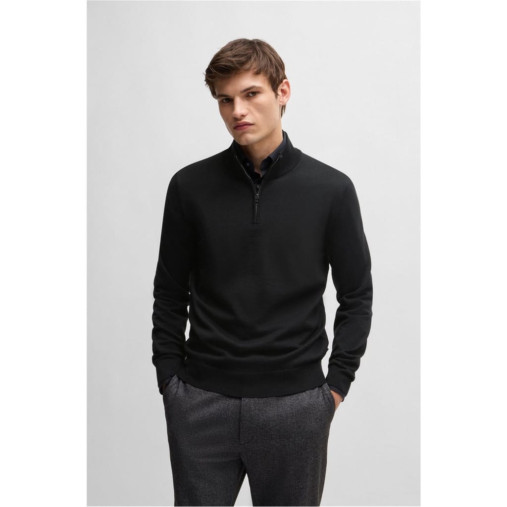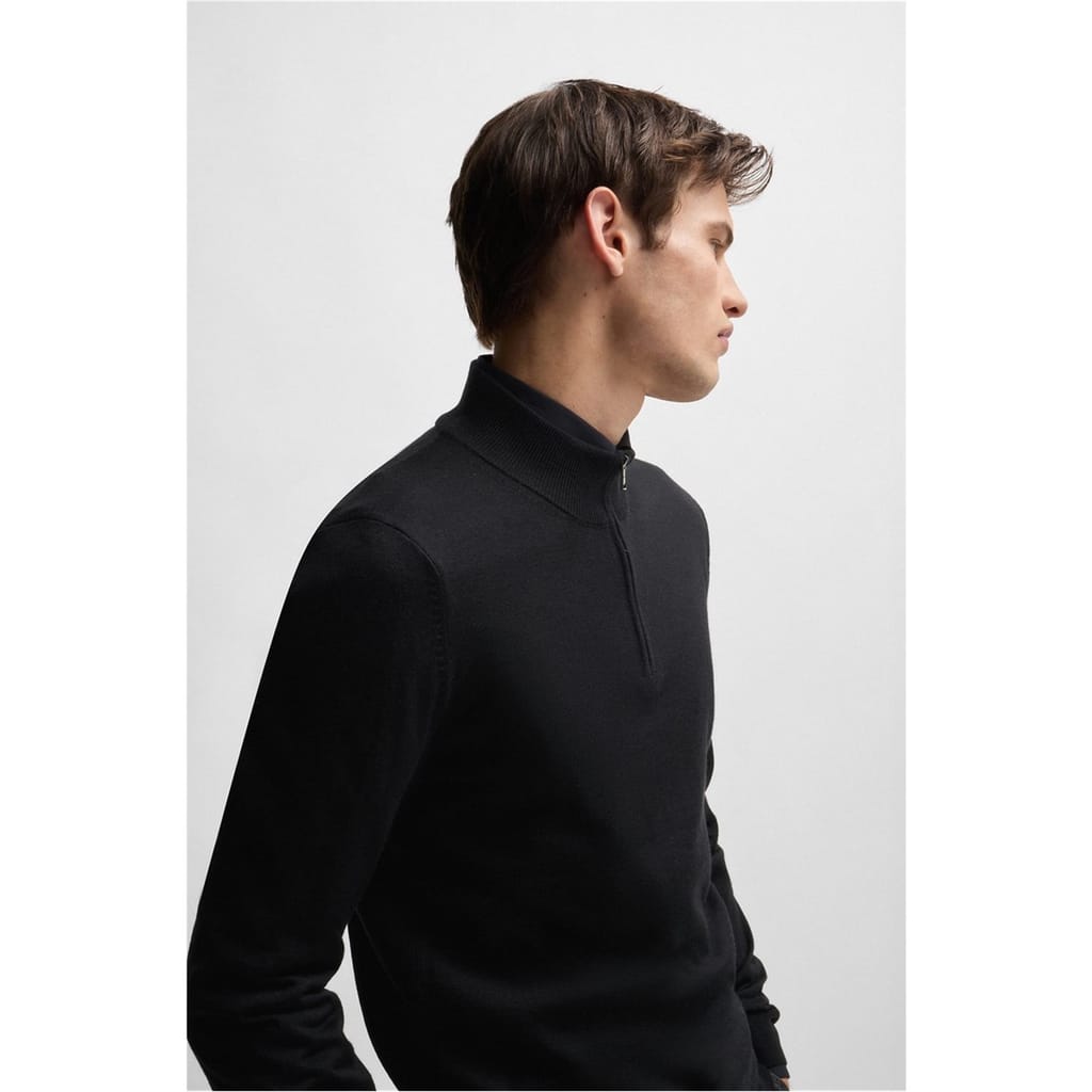 This Boss top features a mock neck and a convenient zipper closure, offering a regular fit. The solid pattern is complemented by a subtle logo embellishment, adding a touch of brand identity. Ideal for those seeking a blend of style and comfort. -