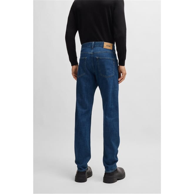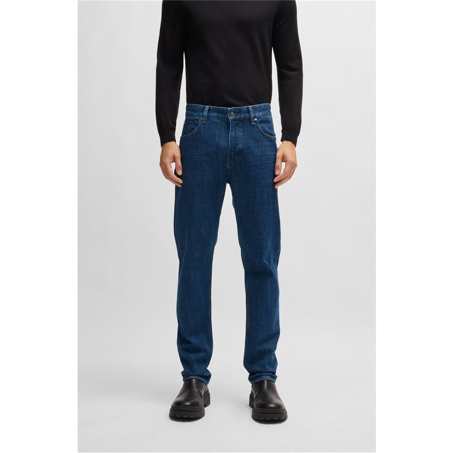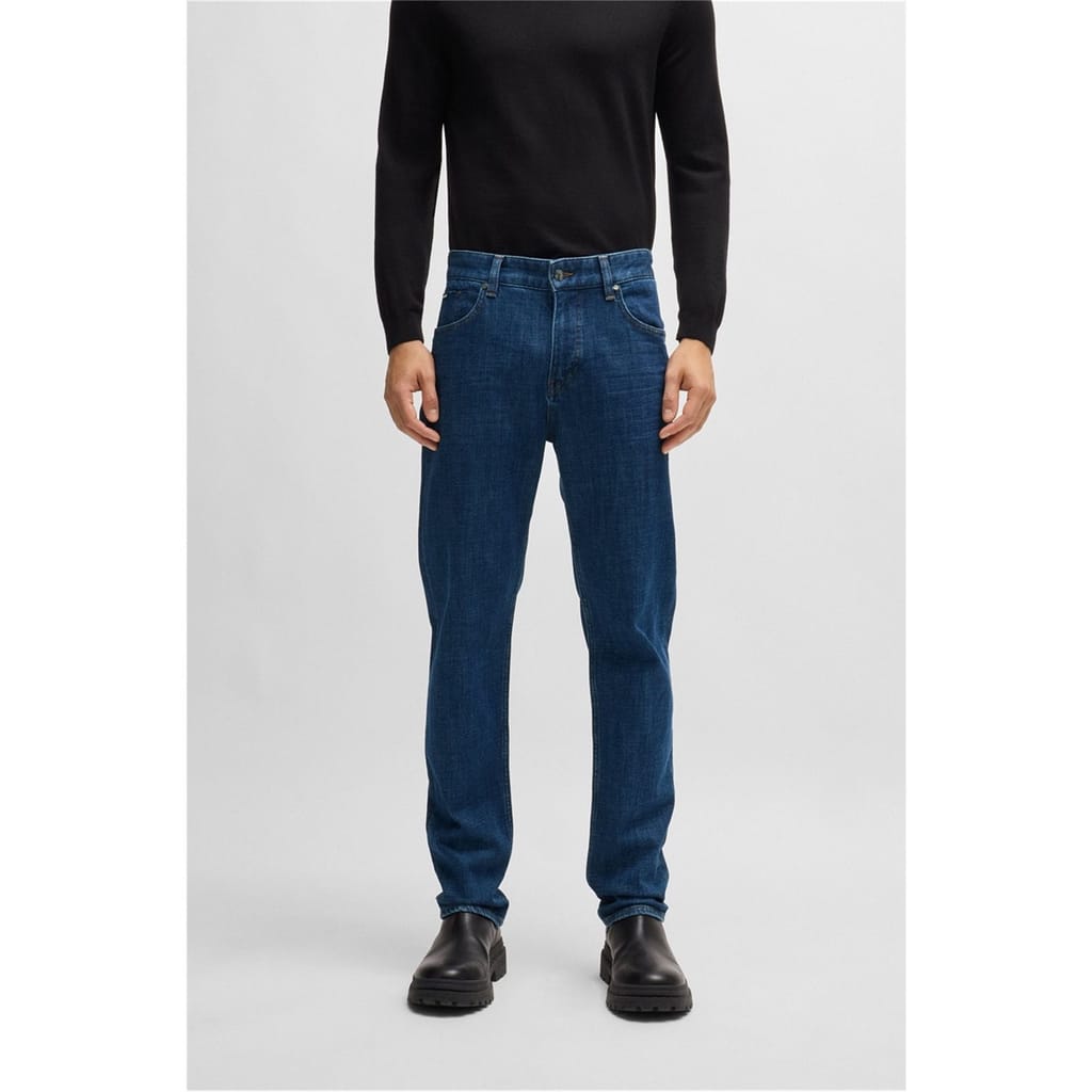 Discover the Boss jeans featuring a straight fit and a classic five-pocket design. These jeans are equipped with a zip fly and button closure for a secure fit. The subtle logo embellishment adds a touch of brand identity, making them a versatile addition to your wardrobe. -