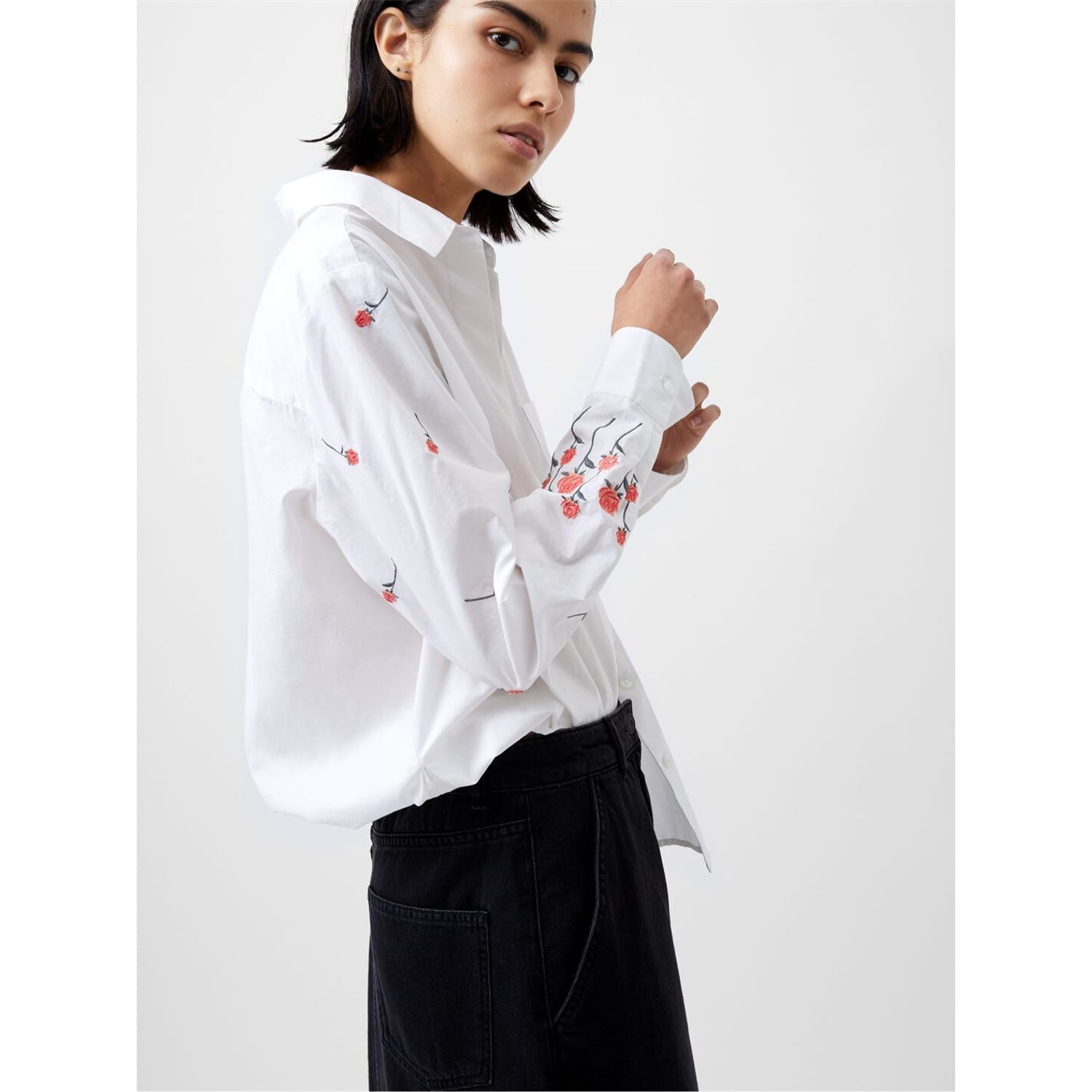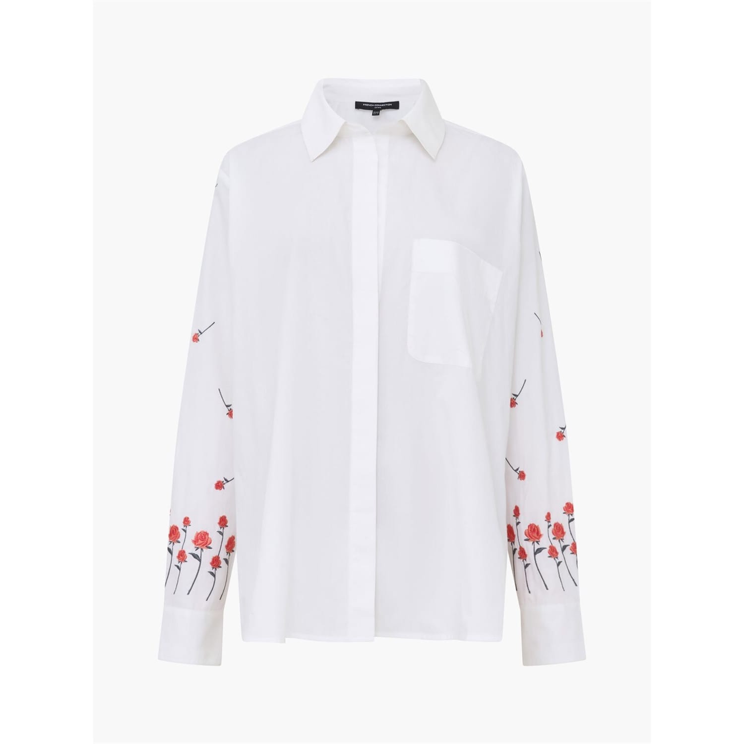 This French Connection dress shirt is designed with a floral pattern, offering a regular fit and featuring a shirt collar. The long sleeves end in barrel cuffs, adding a touch of sophistication. The shirt is adorned with embroidery, and the button closure ensures practicality. Perfect for an understated yet stylish look. -