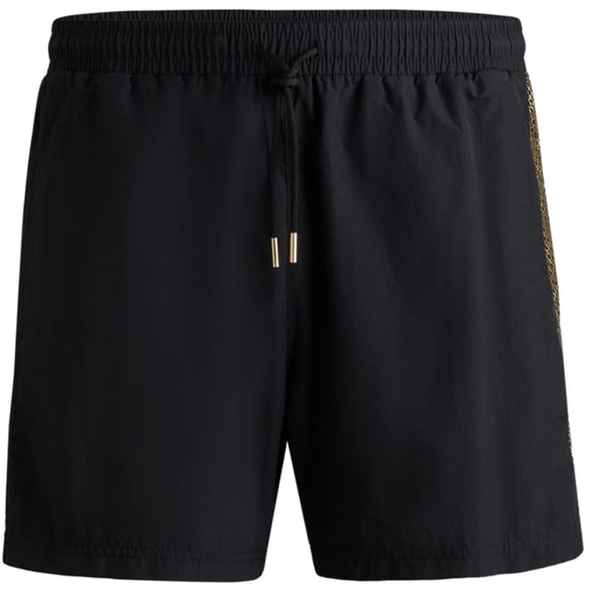 Discover the Boss swimwear swim bottom, designed with a practical drawstring closure for a secure fit. This piece features a subtle logo embellishment, adding a touch of brand identity. Ideal for those seeking a blend of style and functionality in their swimwear collection. -