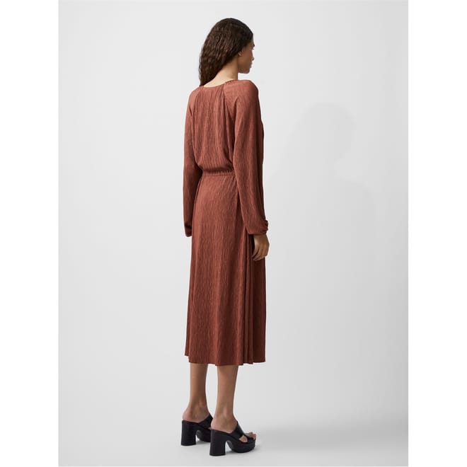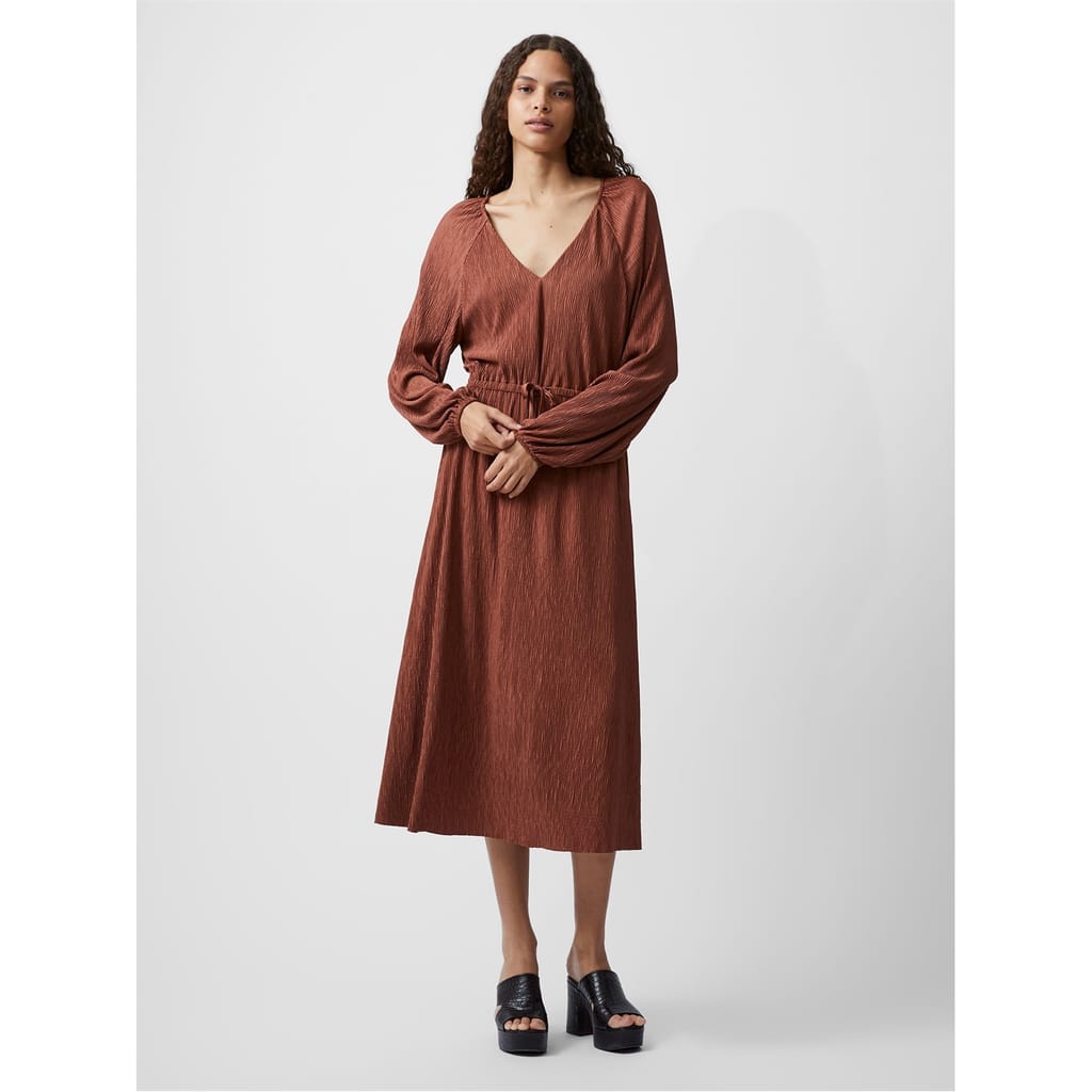 This French Connection jersey dress is a stylish choice for any occasion. Featuring a textured pattern, it comes in a flattering midi length with a V-neckline. The dress is designed with long sleeves and a convenient drawstring closure, offering both comfort and elegance. -