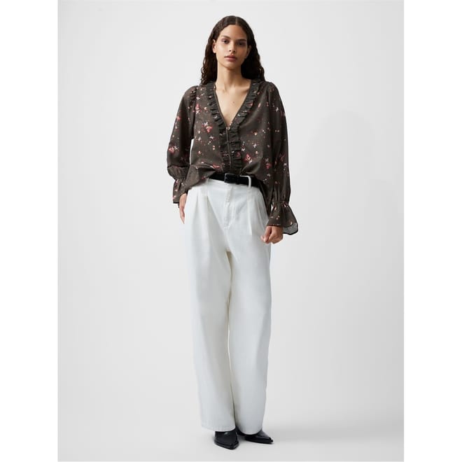 Elevate your wardrobe with this French Connection blouse, a stylish choice for any occasion. Featuring a v-neckline and ruffle long sleeves with elasticated cuffs, this blouse embodies elegance. The floral pattern adds a touch of femininity, while the regular fit ensures comfort. The button closure completes the look with ease and sophistication. -