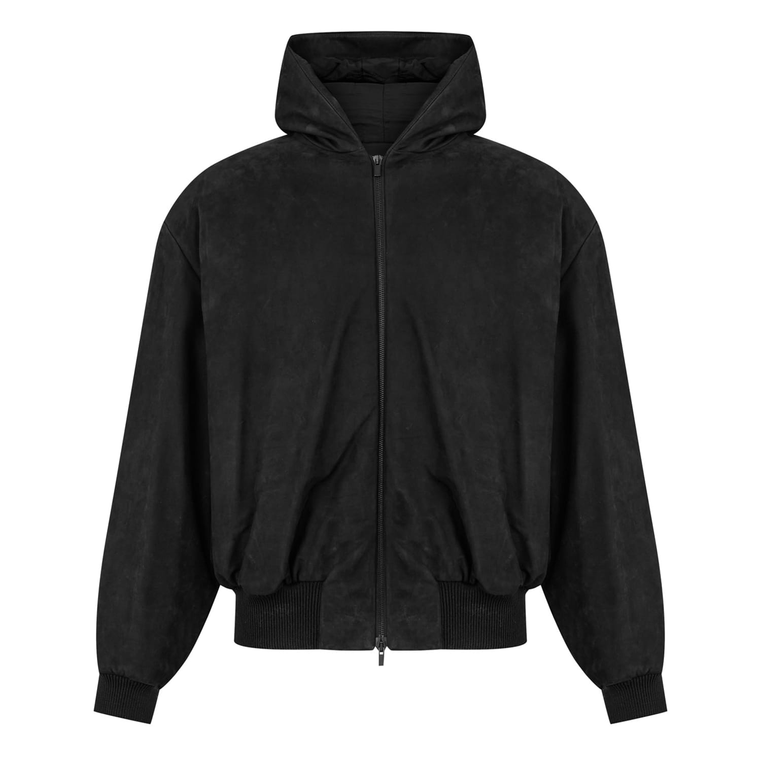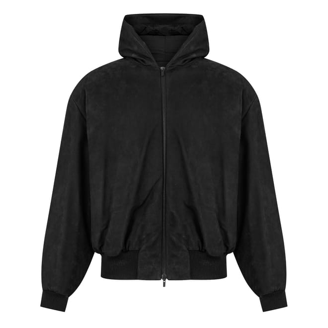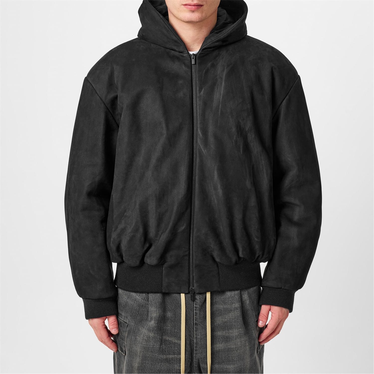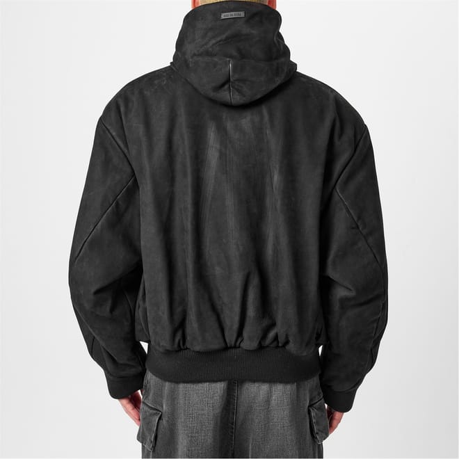 The Fear of God Leather Hooded Bomber Jacket is a standout piece that combines luxury with effortless style. Crafted from soft nubuck leather with wool rib-knit cuffs and hem, it’s perfect for cool evenings or layering during transitional seasons. This versatile jacket elevates casual looks while offering a relaxed and refined silhouette.