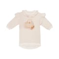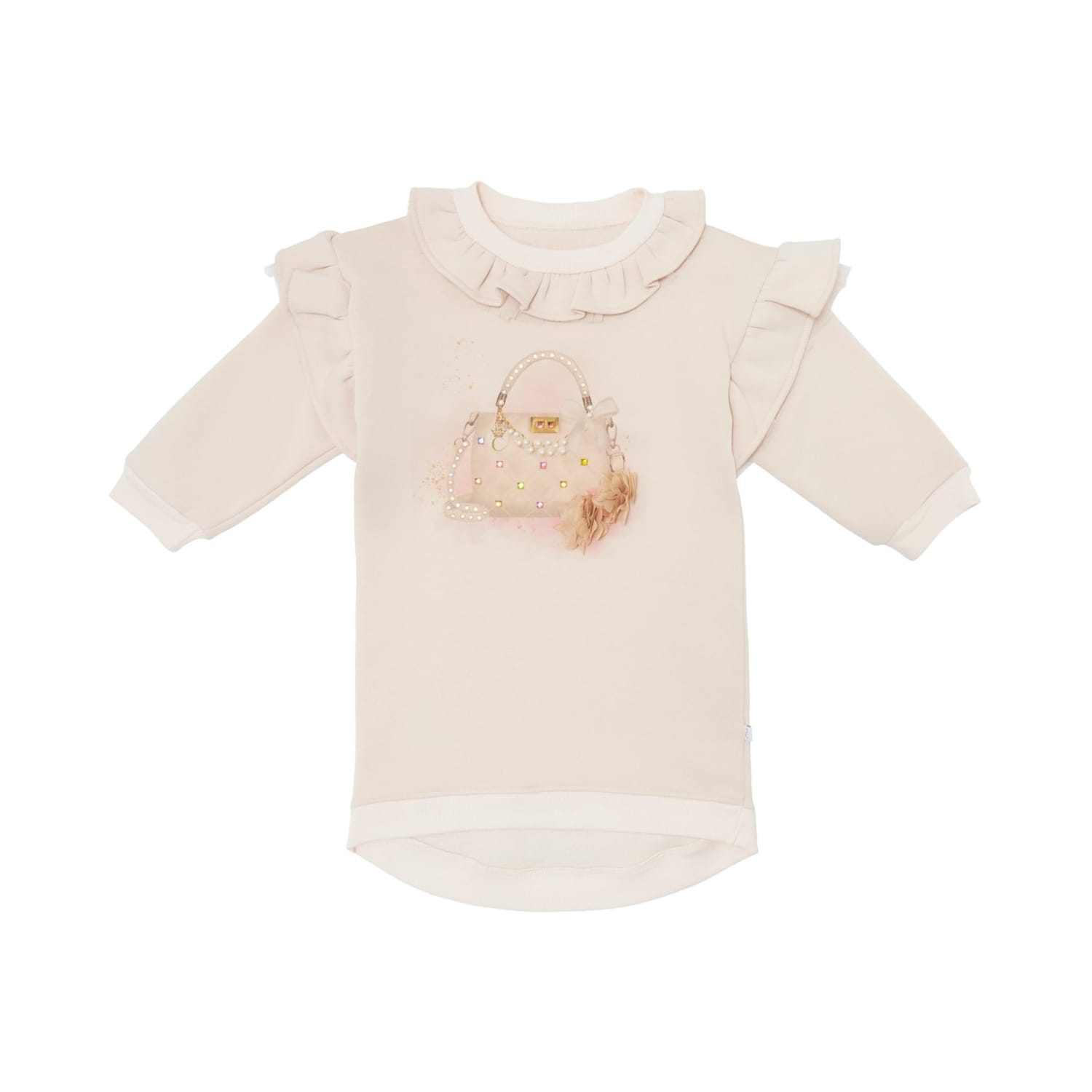 This Caramelo Kids mini dress is perfect for juniors, featuring a crew neck and three-quarter ruffle sleeves. The sweatshirt style offers a regular fit, while the curved hem adds a touch of elegance. The dress is adorned with a graphic print, making it a stylish choice for any occasion. -