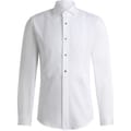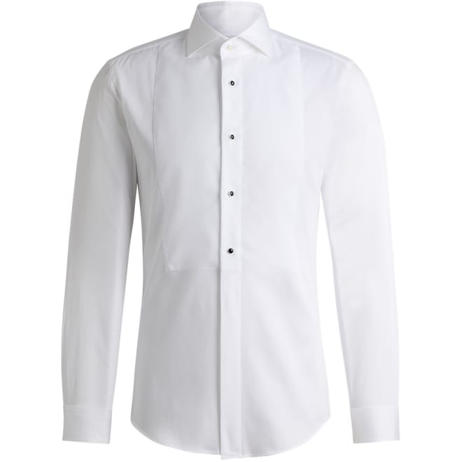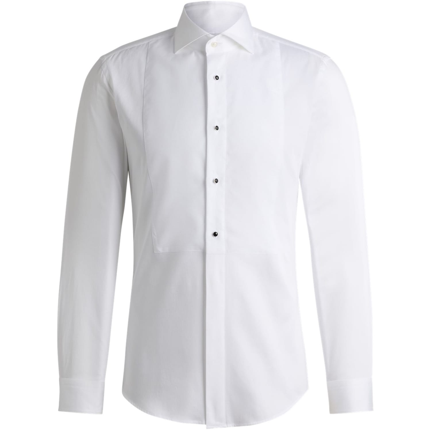 This Boss formal jacket features a point collar and a curved hem, offering a sleek and sophisticated look. The slim fit design is complemented by a solid pattern, while the button closure adds a classic touch. The cuff sleeves enhance the overall elegance, making it a perfect choice for formal occasions. -
