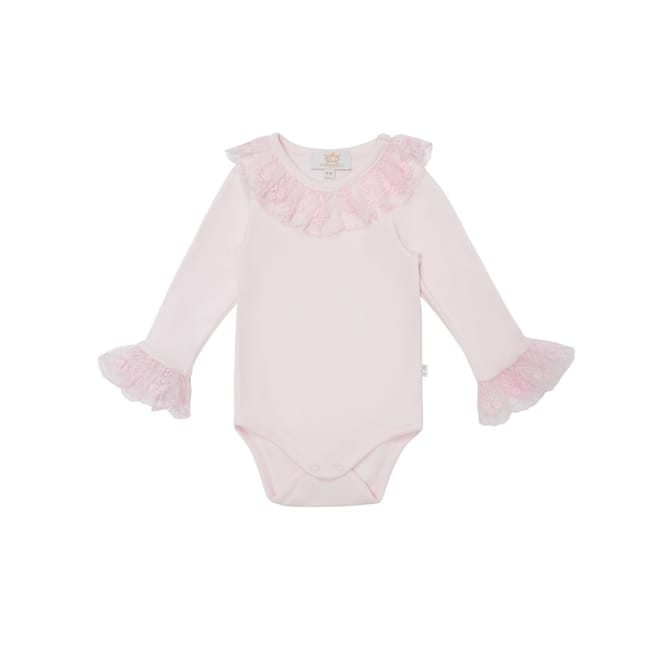 This Caramelo Kids top features a charming ruffle sleeve design with a regular fit. The solid pattern is complemented by delicate lace trim and ruffle embellishments, adding a touch of elegance. The crew neck and snap button closure ensure comfort and ease of wear, making it a stylish choice for any occasion. -