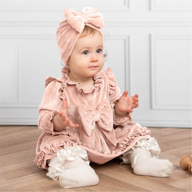 This Caramelo Kids mini dress is a charming addition to any wardrobe. Designed in an A-line style, it features long ruffle sleeves and a ruffle hem, adding a playful touch. The solid pattern is complemented by delicate bow and ruffle embellishments, creating a delightful set perfect for various occasions. -