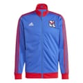 The Adidas sweatshirt is designed for sporting activity, featuring a zip neck and long raglan sleeves. This track top boasts a regular fit with ribbed cuffs and collar. The stripe pattern adds a dynamic touch, while the logo embroidery signifies quality. Perfect for a sporty look with both style and comfort. -