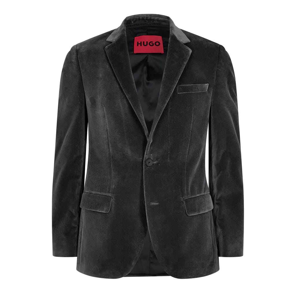 This Hugo suit jacket epitomizes timeless elegance with its solid pattern and lapel collar. Crafted in a regular fit, it features a button closure and practical pockets, offering both style and functionality. Ideal for formal or business occasions, this piece is a staple for any sophisticated wardrobe. -