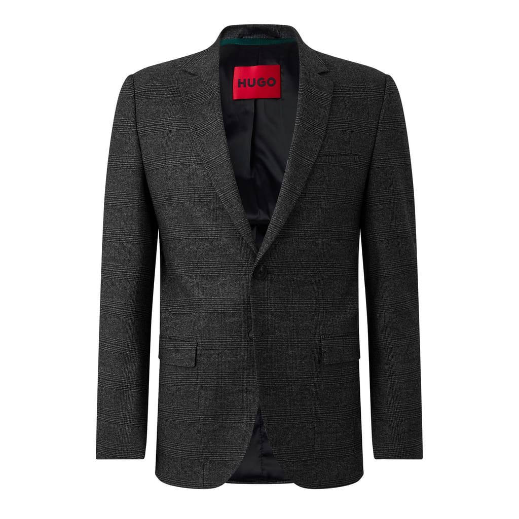 Elevate your wardrobe with this Hugo suit jacket, designed in a classic plaid pattern. Featuring a notch collar and a button closure, this regular fit jacket combines sophistication with practicality. Embellished with pockets, it offers both style and functionality. Perfect for those seeking a timeless yet modern jacket. -
