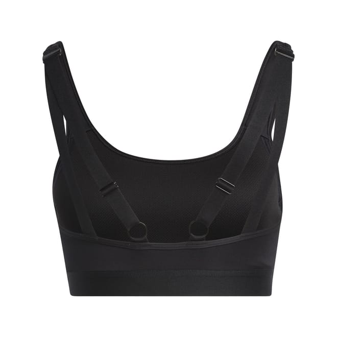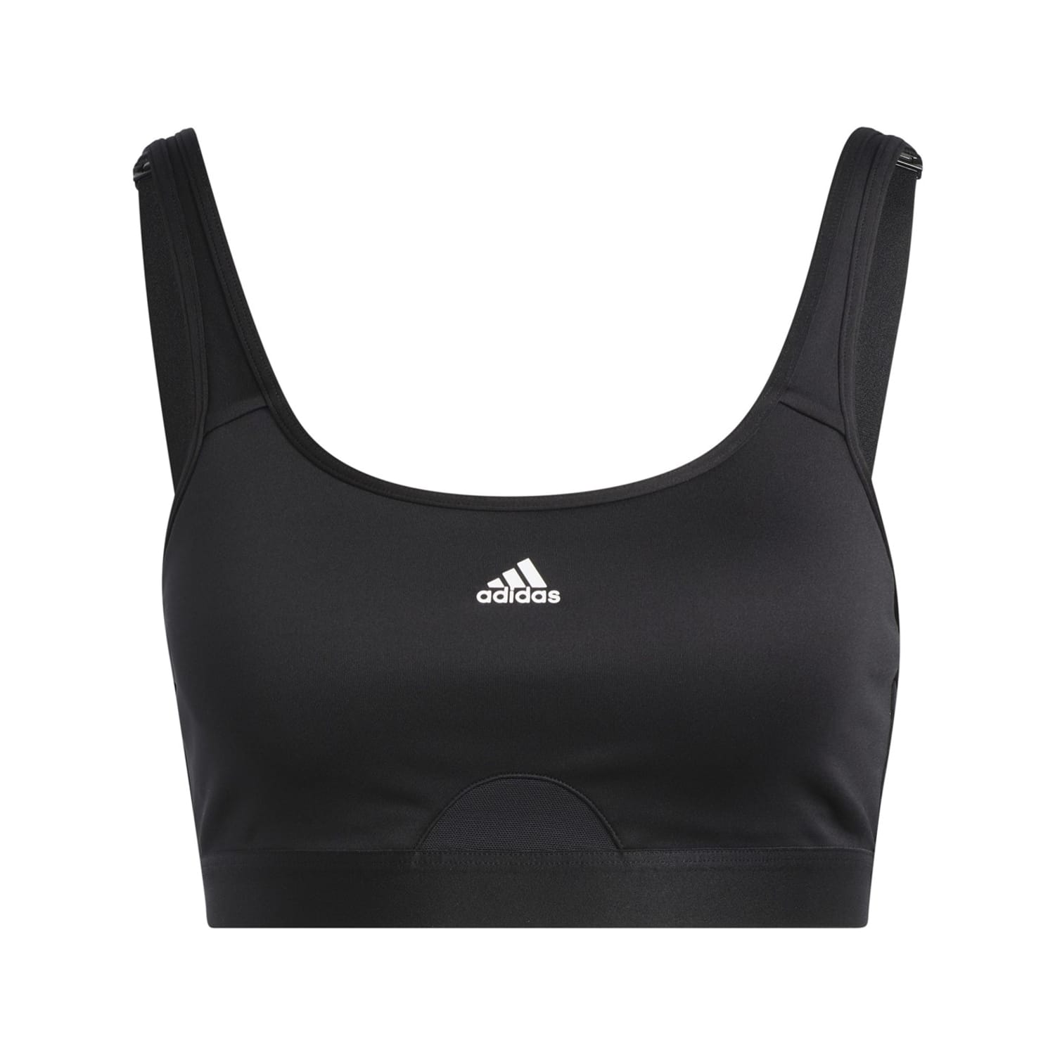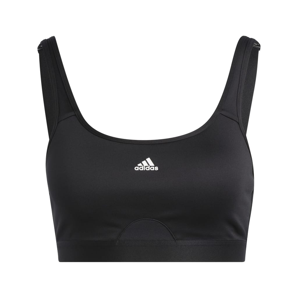 Elevate your activewear with this Adidas sports bra, designed for training. Featuring a scoop neck and sleeveless design, it provides a snug fit ideal for gym sessions. The solid pattern enhances its sleek look, while the iconic logo adds a touch of brand recognition. -