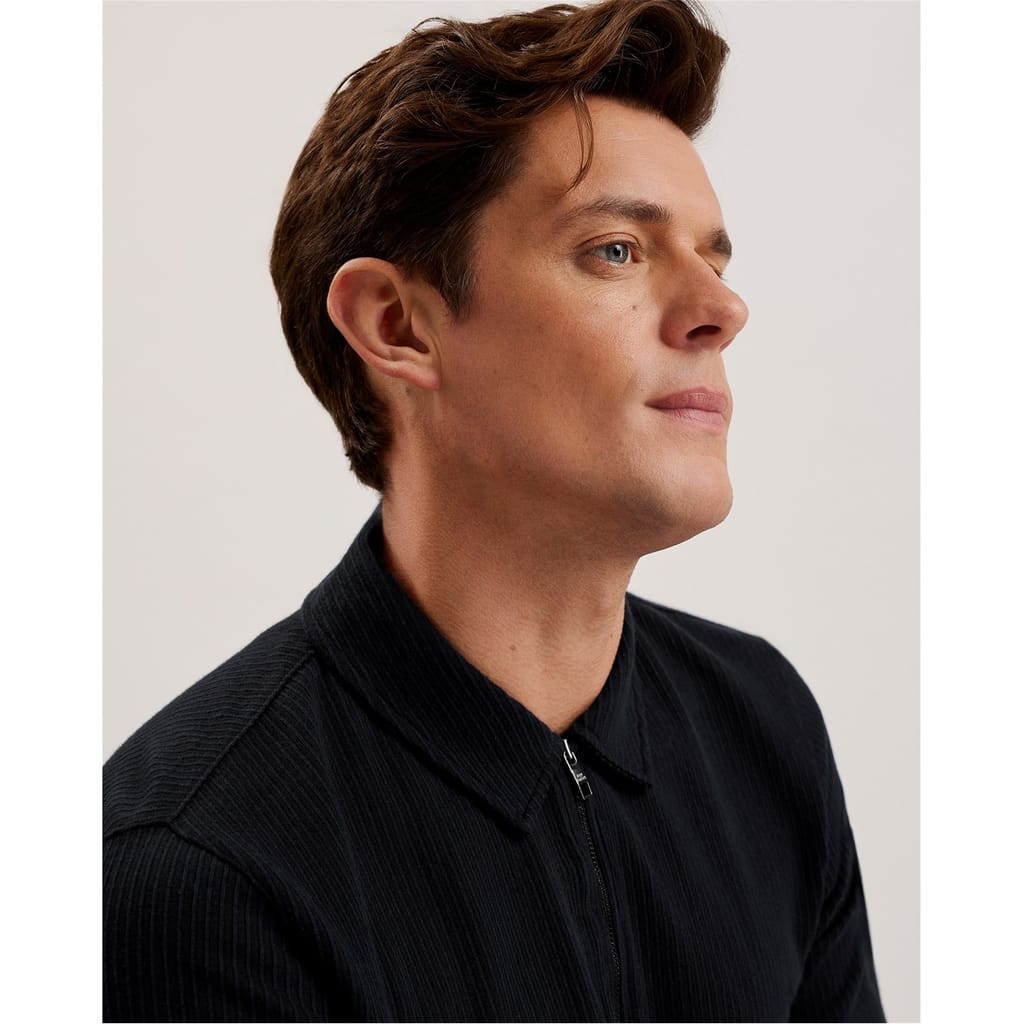 Discover the Ted Baker polo shirt from the semi-formal collection. This top features a classic polo collar, short sleeves, and a convenient zipper closure. Designed for a regular fit, it's a versatile addition to your wardrobe, perfect for a polished yet relaxed look. -