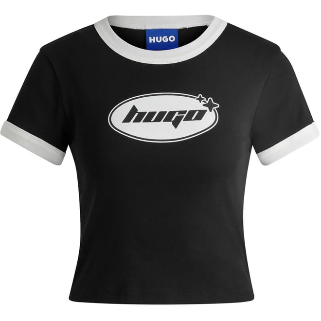 Seamlessly merging retro charm with modern style, the Hugo Dalia Baby Ringer T-Shirt is a standout addition to any trendsetting wardrobe. Whether you are hanging out with friends or exploring city streets, this cropped tee is designed to instantly elevate any everyday ensemble.