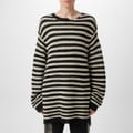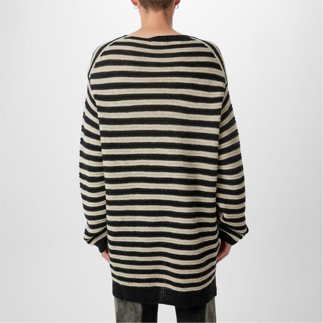 Contemporary aesthetics and luxurious pieces are synonymous with Yohji Yamamoto and showcased in this Striped Asymmetric Neck Jumper. With its dropped shoulders and asymmetric neck, this striped jumper boasts a classic appeal. Whether lounging at home, enjoying a leisurely afternoon or getting drinks in the city with friends this jumper enhances your comfort whilst adding a distinguished element to your look.