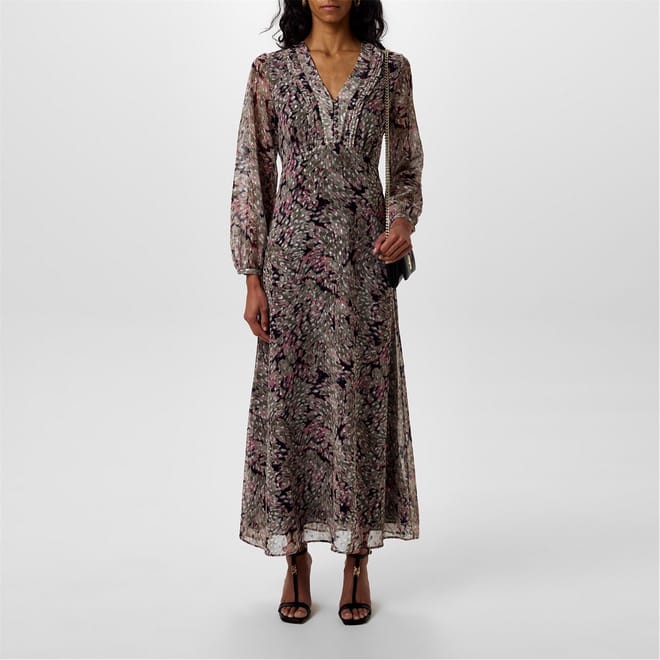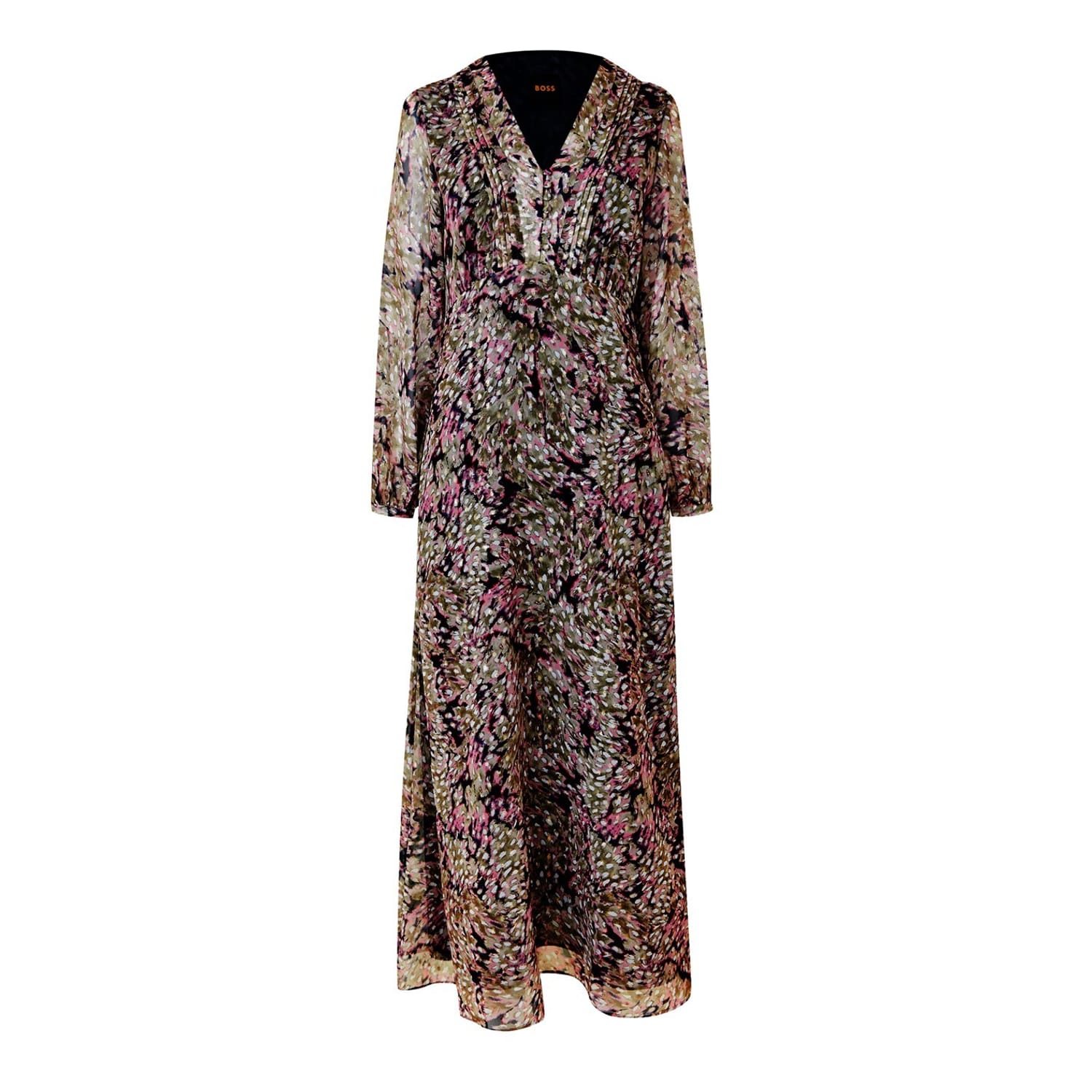 For any high-class event or evening soirée, embrace your most glamorous self with this stunning Boss C Dennas Maxi Dress. The gorgeous pattern complemented by a subtle metallic detail adds the perfect visual appeal, ensuring you stand out with impeccable style and grace.