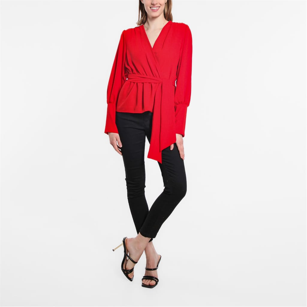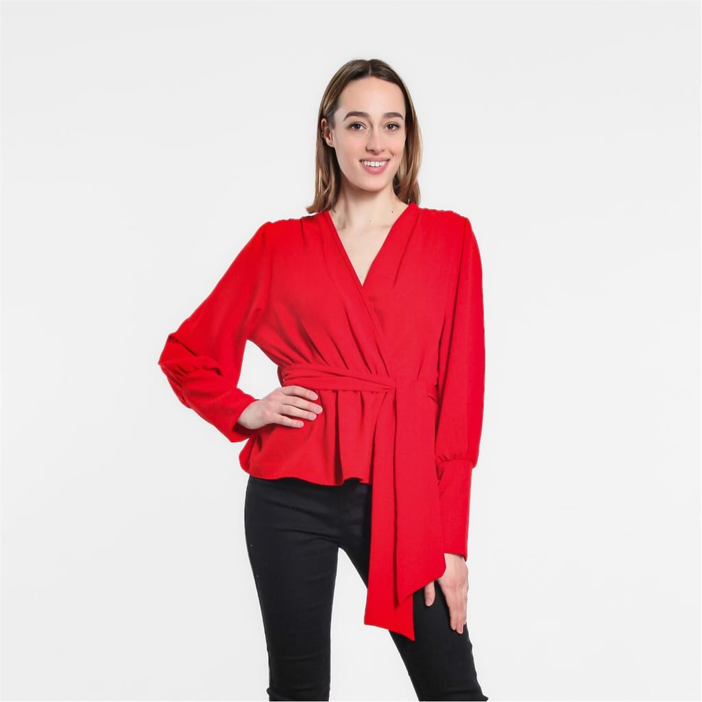 Elevate your wardrobe with this Be You peplum blouse. Featuring a V-neckline and bishop long sleeves, this solid top offers a relaxed fit and a tie waist closure for a flattering silhouette. Perfect for adding a touch of elegance to any outfit. -