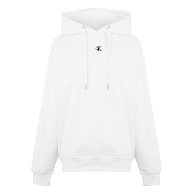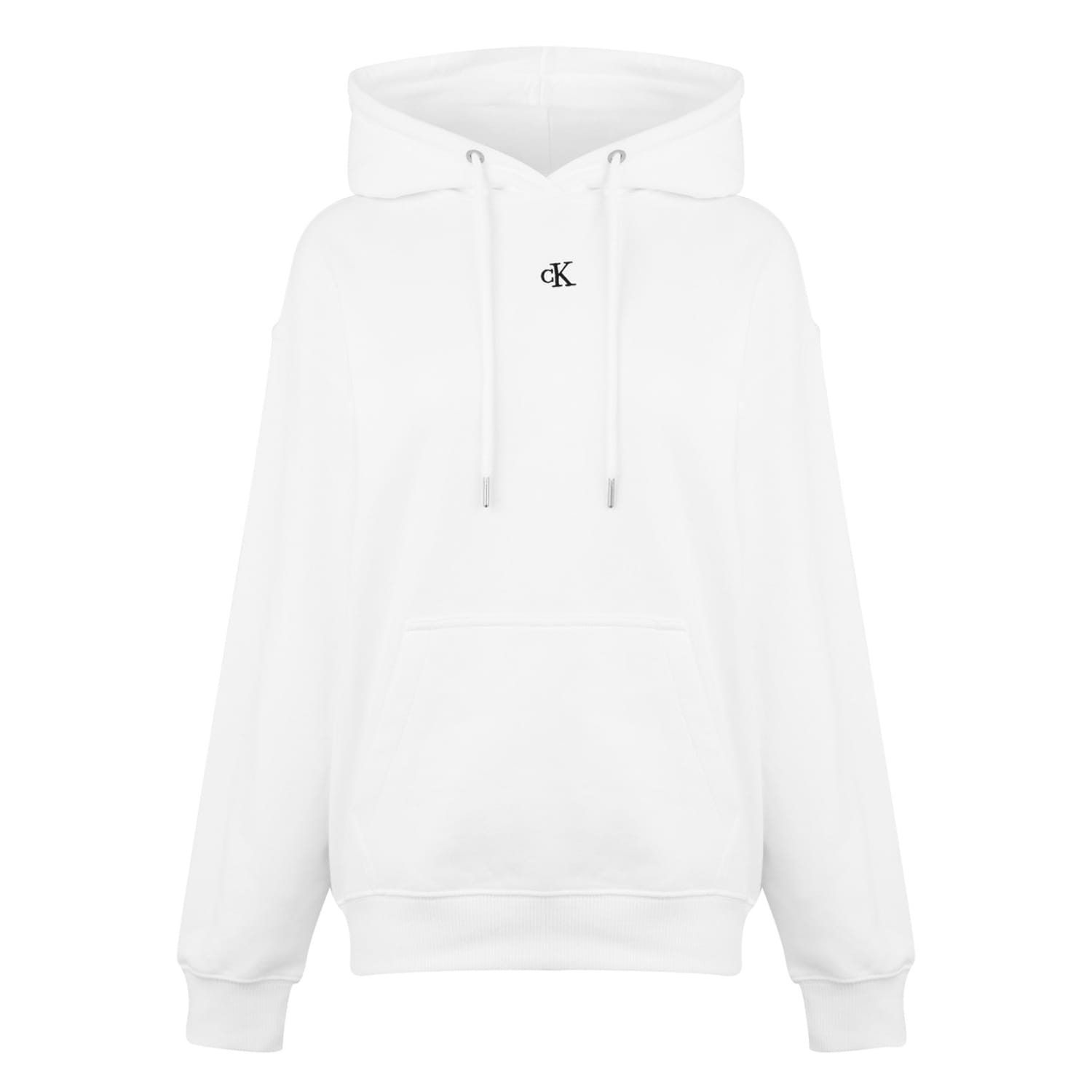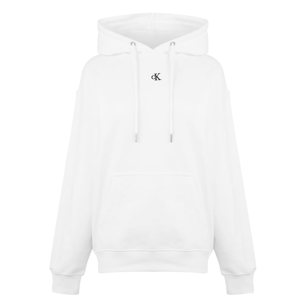 Calvin Klein Jeans sweatshirt in a relaxed fit combines style and comfort. This hoodie features a hood, drop shoulder long sleeves, and a drawstring closure. Ribbed cuffs add to its design, while embroidered embellishments and a front pocket enhance functionality. A front logo adds a signature touch, making it a versatile addition to your collection. -