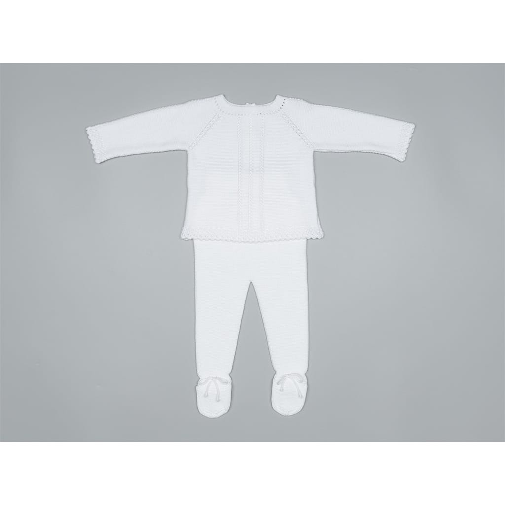 Discover the Artesania Granlei two-piece set, featuring a charming sweater with a crew neck and long plain sleeves. The sweater is adorned with delicate crochet details, adding a touch of elegance. Paired with comfortable leggings, this set offers a stylish and cohesive look. Perfect for those seeking a blend of comfort and sophistication. -