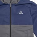This Firetrap windbreaker jacket features a hooded design and a convenient zipper closure, perfect for braving the elements. The regular fit ensures comfort, while the elasticated cuffs provide a snug fit. The jacket is adorned with a logo and showcases a stylish color block pattern, making it a versatile addition to any wardrobe. -