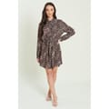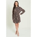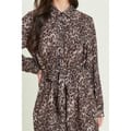 This Be You mini shirtdress features a striking leopard pattern and a collared neck with a point shirt collar. The long sleeves provide a sophisticated touch, while the tie waist closure ensures a flattering fit. The dress is designed with a curved hemline, adding a stylish edge to your wardrobe. -