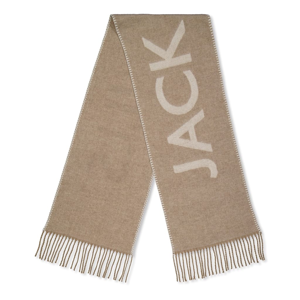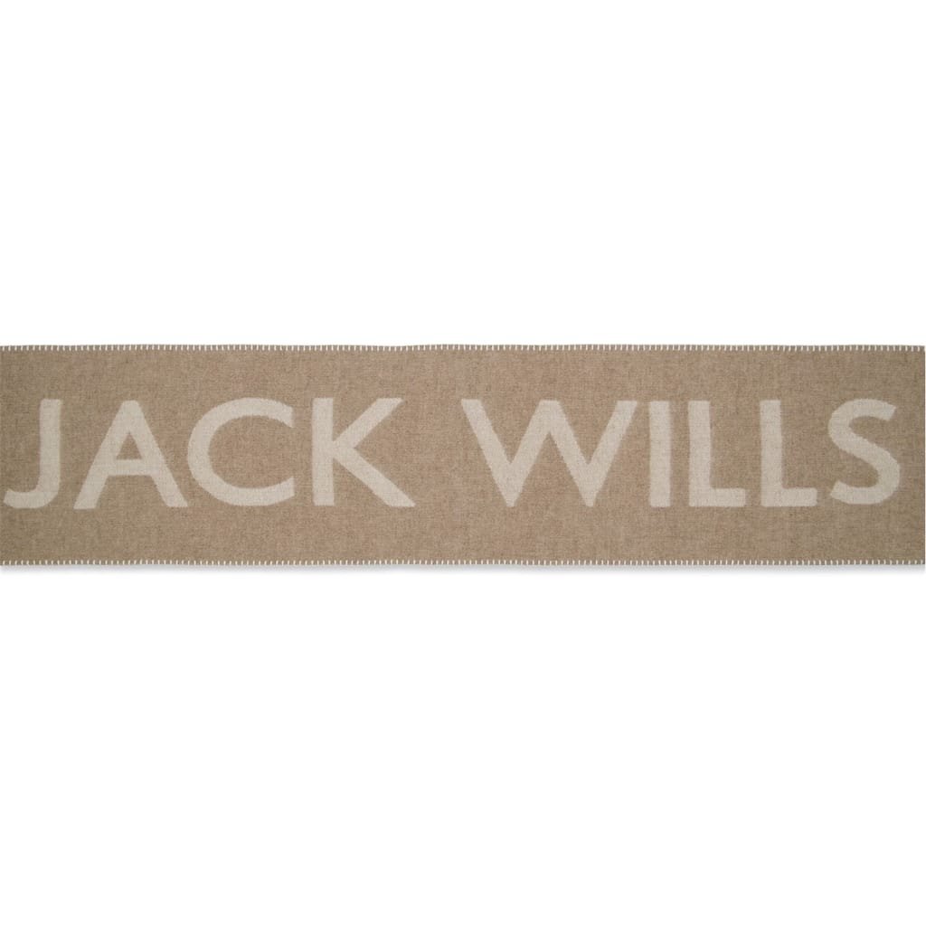 Discover the Jack Wills oblong scarf, a stylish accessory featuring a distinctive logo print pattern. This scarf is adorned with fringe embellishments and showcases elegant lettering graphics. The inclusion of the brand's logo adds a touch of sophistication, making it a versatile addition to any wardrobe. -