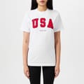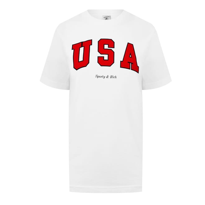 Revitalise your everyday wardrobe with the USA Varsity T-Shirt from Sporty & Rich. Meticulously crafted in premium jersey, this tee for women is ideal for meeting friends for brunch or for walking home from the gym.