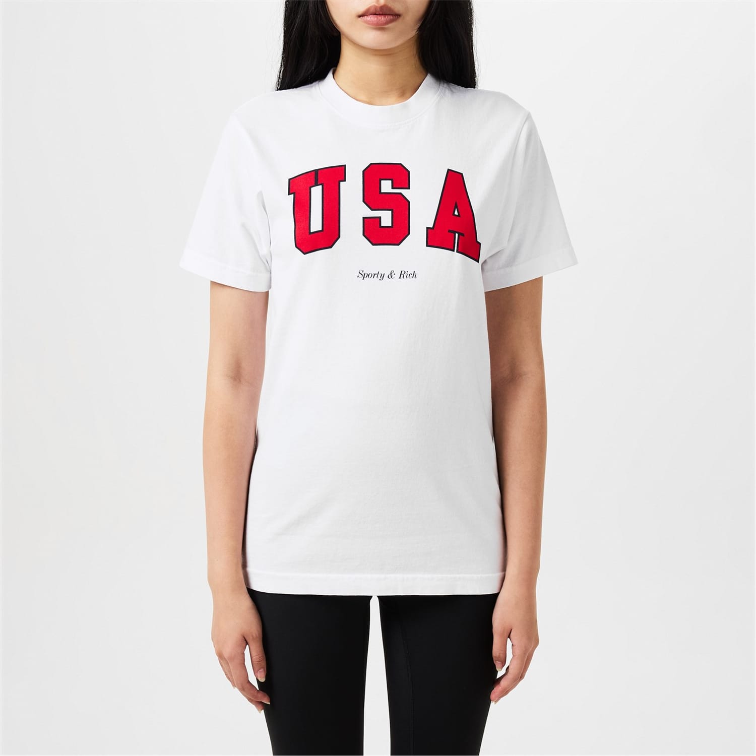 - USA Varsity logo and Sporty & Rich lettering on the chest for instant brand recognition.