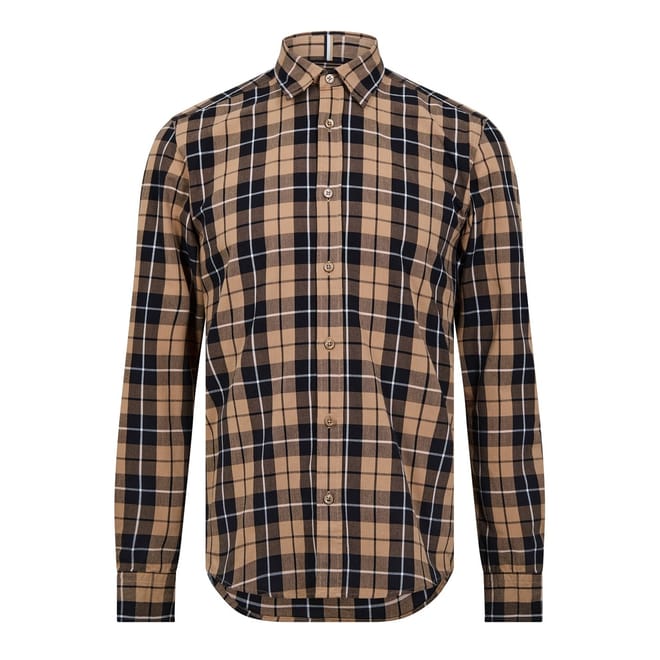 This Boss top features a classic plaid pattern, offering a timeless appeal. Designed with a shirt collar and button closure, it ensures a polished look. The regular fit provides comfort and style, making it a versatile addition to your wardrobe. -