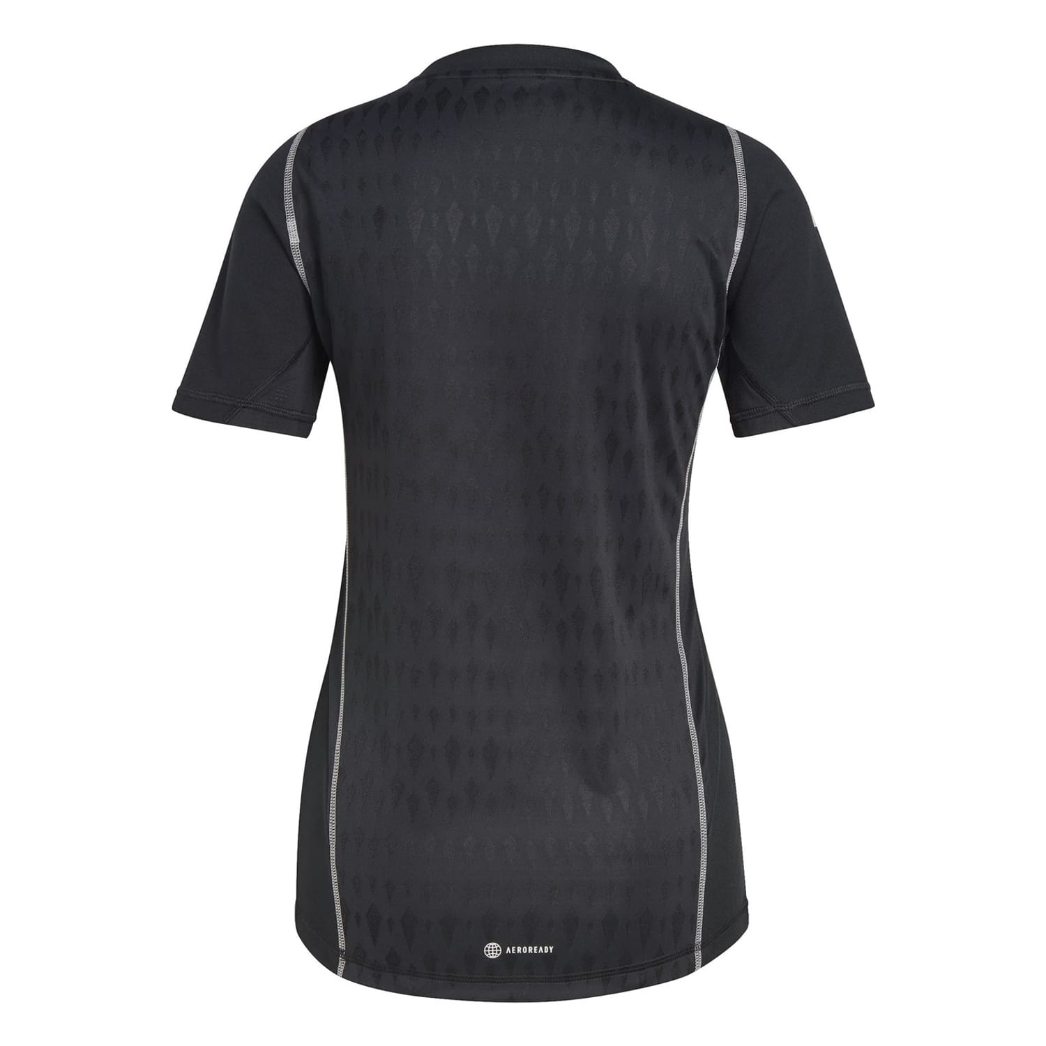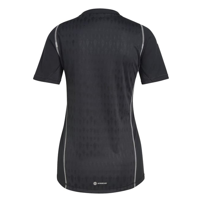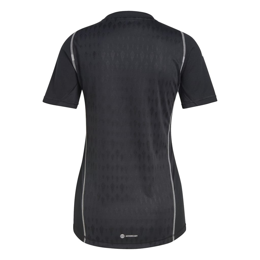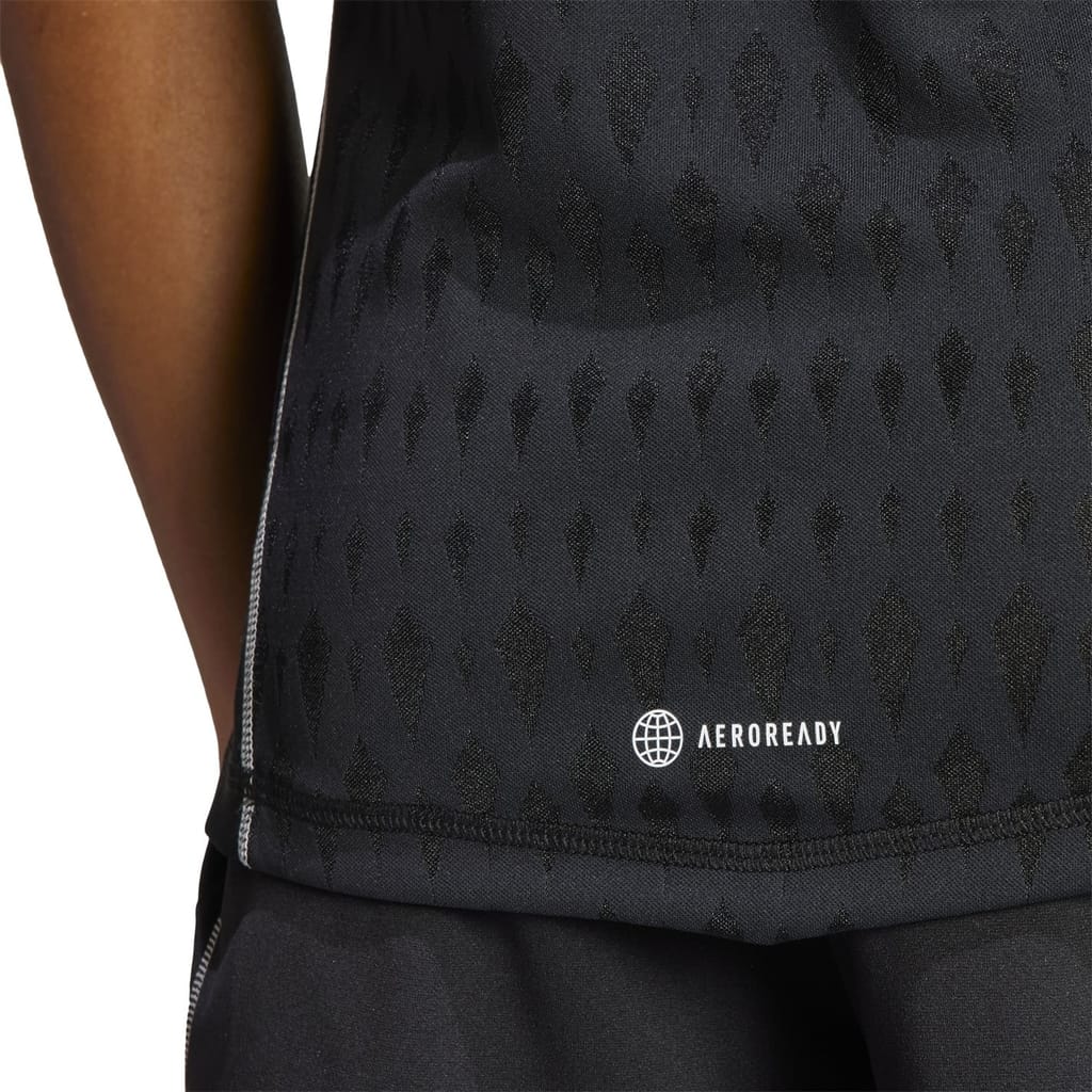 Elevate your training sessions with this Adidas t-shirt, designed for spring and summer activewear. Featuring a regular fit and a straight hem, this geometric-patterned top offers a comfortable and stylish option for gym or sporting activities. The short sleeves and V-neckline provide a classic look, complemented by the iconic logo embellishment. -