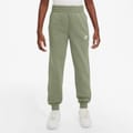 Take your young one's sporty attire to the next level with the Nike Fleece Jogging Bottoms. Crafted from a blend of cotton and polyester, with a fleece lining, these joggers offer comfort and warmth. The regular fit and full-length with elasticated cuffs provide a classic appeal, while the elasticated waistband with an internal drawcord ensures a secure and customisable fit.