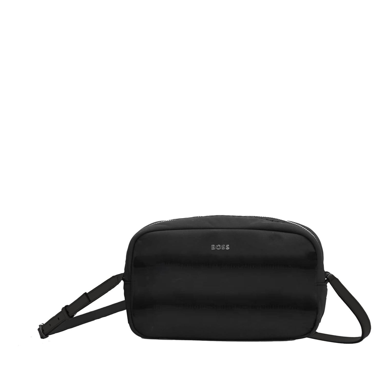Discover the Boss cross body bag, a stylish addition to your collection. Featuring a ribbed pattern and a secure zipper closure, this bag is designed for convenience and style. The shoulder handle ensures comfortable carrying, while the logo embellishment adds a touch of brand elegance. -