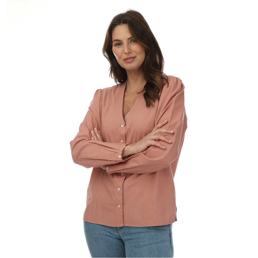 This Dockers blouse from the Barbie collection is perfect for spring and summer. Featuring a V-neck and long sleeves, it offers a regular fit and a solid pattern. Crafted from woven fabric, it ensures comfort and style for any occasion. -