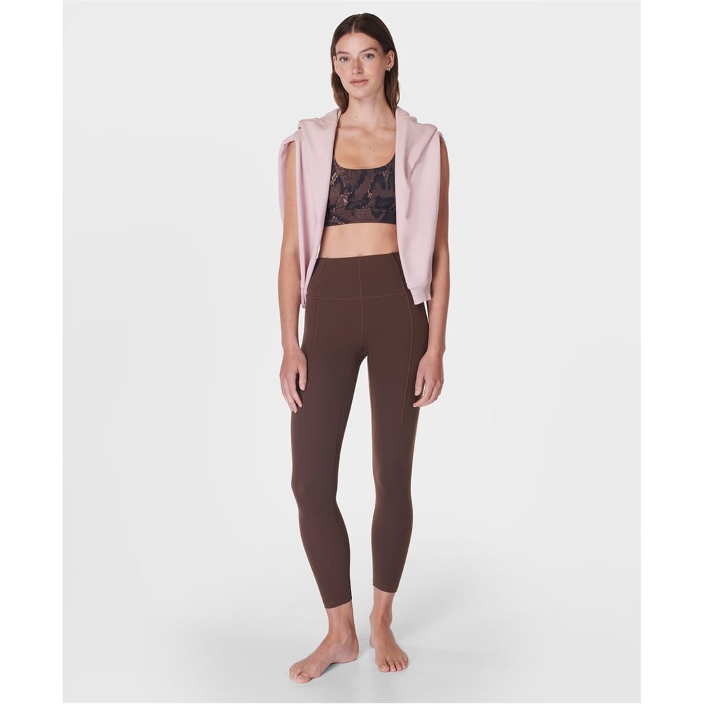 Sweaty Betty leggings are designed for activewear and yoga enthusiasts. Crafted with a soft material, these leggings feature an inner drawstring for a secure fit. The addition of a pocket offers practicality, making them a versatile choice for your workout wardrobe. -