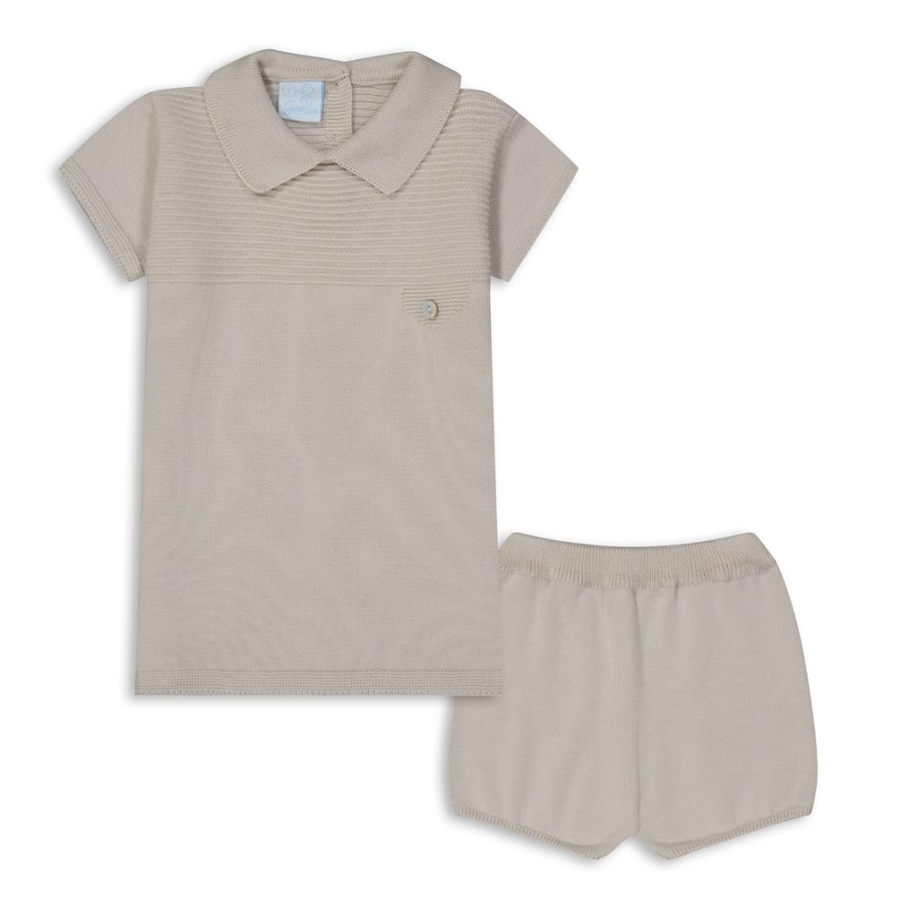 This Artesania Granlei top short set features a collared neck shirt with short plain sleeves, paired with matching shorts. The set includes a subtle logo embellishment, adding a touch of distinction to the outfit. Perfect for those seeking a coordinated and stylish look. -