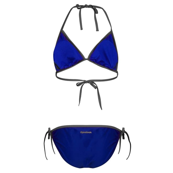 This Reebok Allegra 2 Piece Bikini consists of a top and bottoms. The top is crafted with tie fastening straps to the back and neck plus triangle cups. The bottoms feature an elasticated waistband, tie sides and flat lock seams. Both pieces in this set are a solid colouring throughout designed with a signature logo and are complete with Reebok branding. -