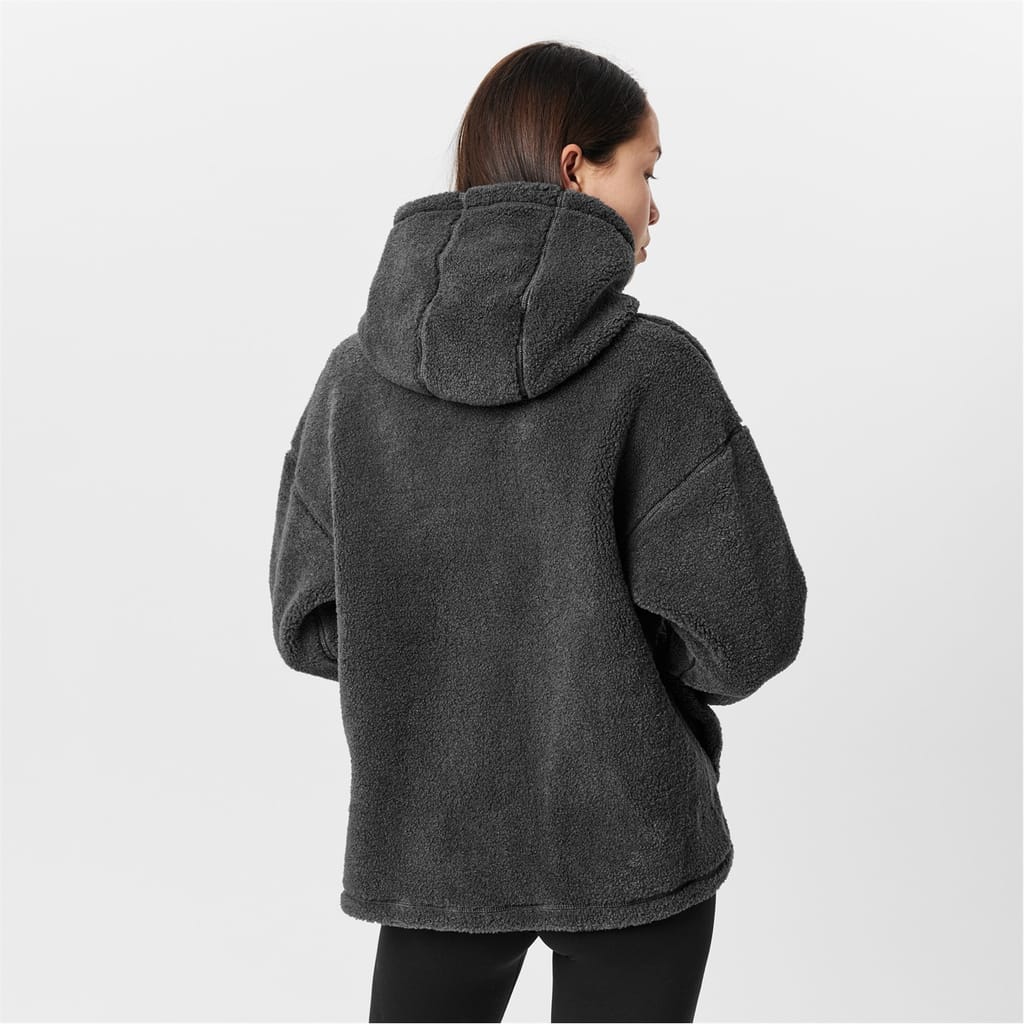 Discover the Sweaty Betty top, featuring a hooded design with a drawstring closure. This long-sleeve piece offers a relaxed fit with drop shoulder sleeves and ribbed cuffs. The solid pattern and practical pocket embellishment add to its appeal, making it a versatile addition to your wardrobe. -