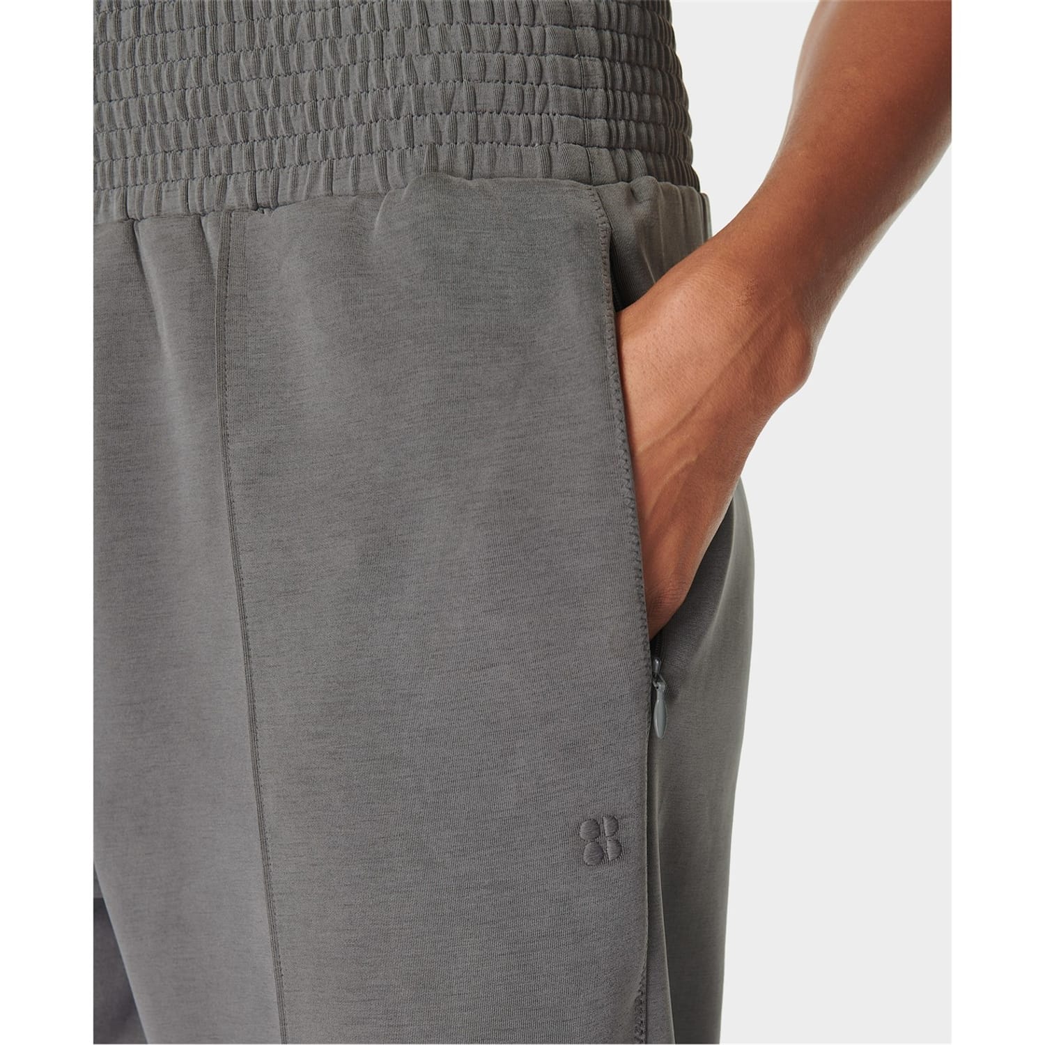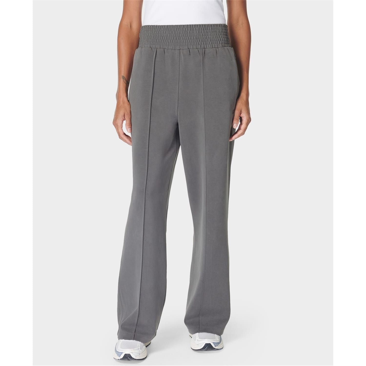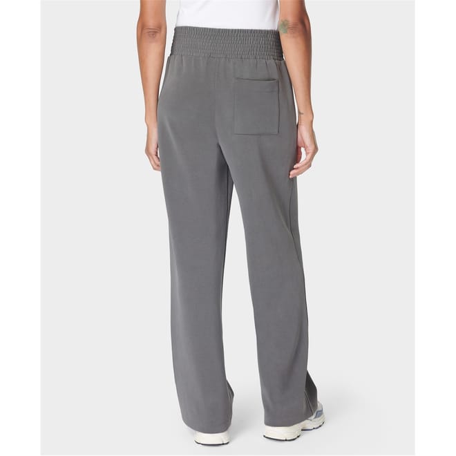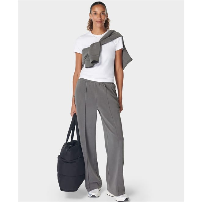 Sweaty Betty track pants offer a relaxed fit with a wide-leg cut, perfect for casual outings. Featuring a drawstring closure and an elasticated waistband, these pants ensure comfort and flexibility. The design includes practical pockets and a subtle logo embellishment, adding a touch of style to your casual collection. -