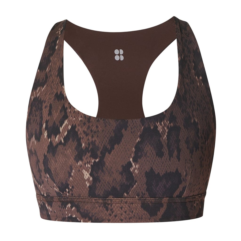 This Sweaty Betty top is perfect for yoga and activewear enthusiasts. Featuring a sleeveless design with a scoop neck, it offers a snug fit and a cropped length. The snake pattern adds a unique touch, while the logo embellishment provides a subtle brand detail. Ideal for sporting activities, this top combines style and functionality. -