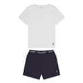 This Lyle & Scott top short set is perfect for loungewear. The set includes a crew neck t-shirt with plain sleeves, offering a classic and comfortable fit. The t-shirt features an embroidered logo, adding a touch of distinction. Paired with matching shorts, this set combines style and ease for a relaxed look. -