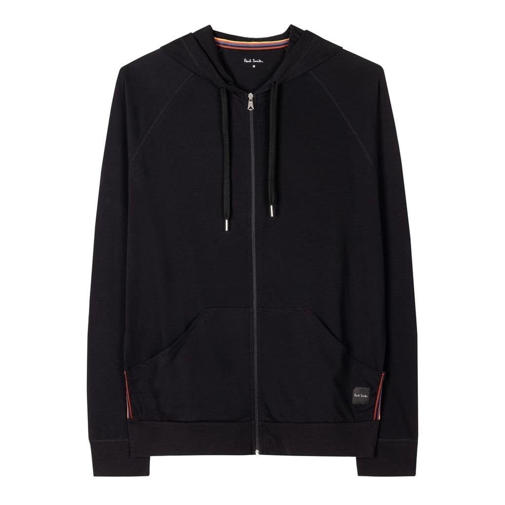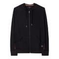 This Paul Smith hooded sweatshirt jacket is a perfect blend of style and comfort, featuring a zipper closure and a solid pattern. Designed with a regular fit and raglan sleeves, it offers a relaxed look ideal for casual and loungewear collections. The ribbed cuffs add a touch of detail, while the logo embellishment provides a subtle brand accent. -