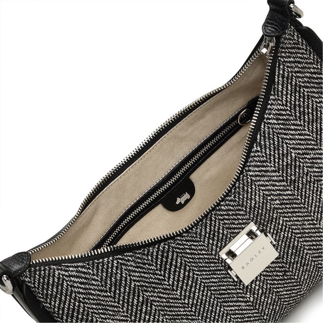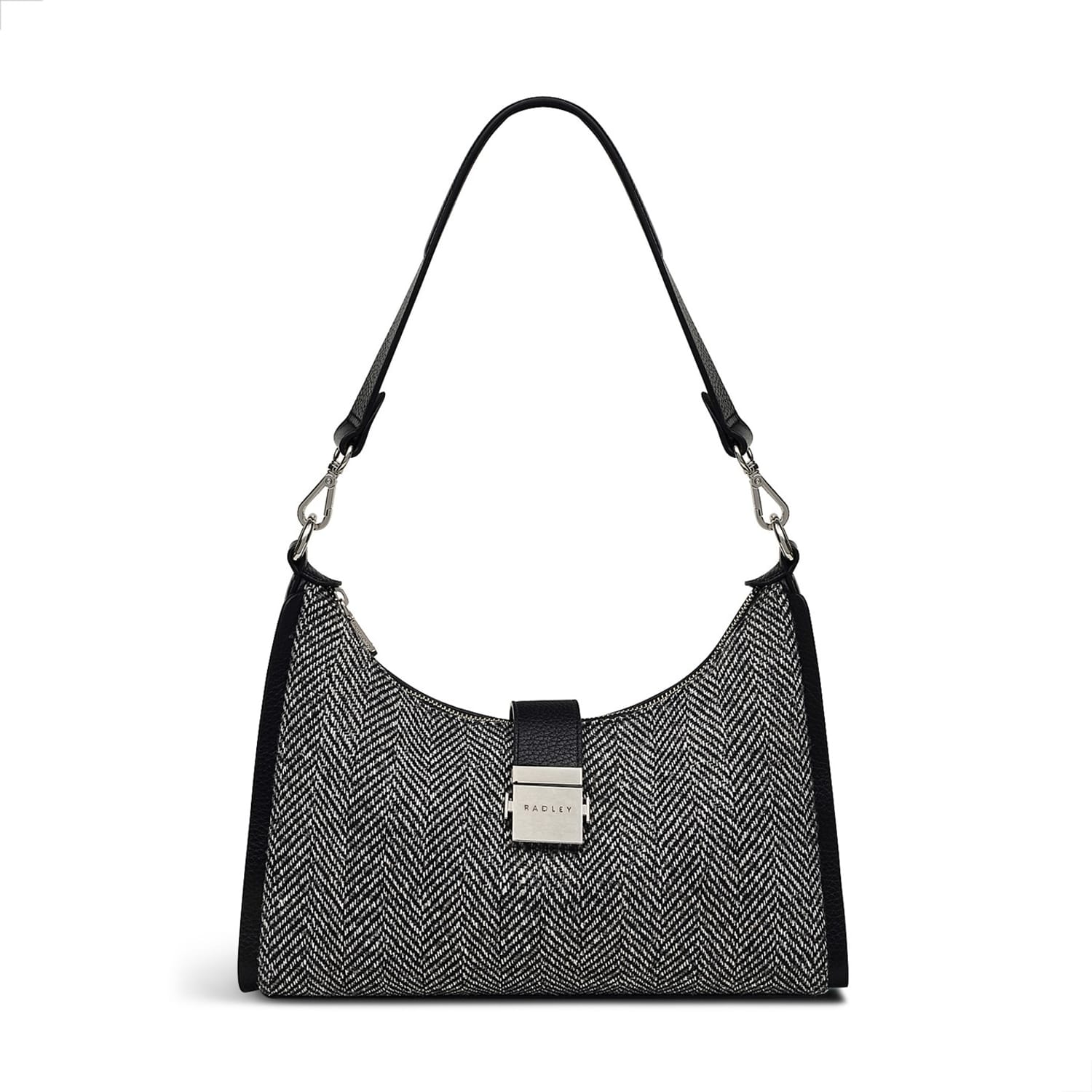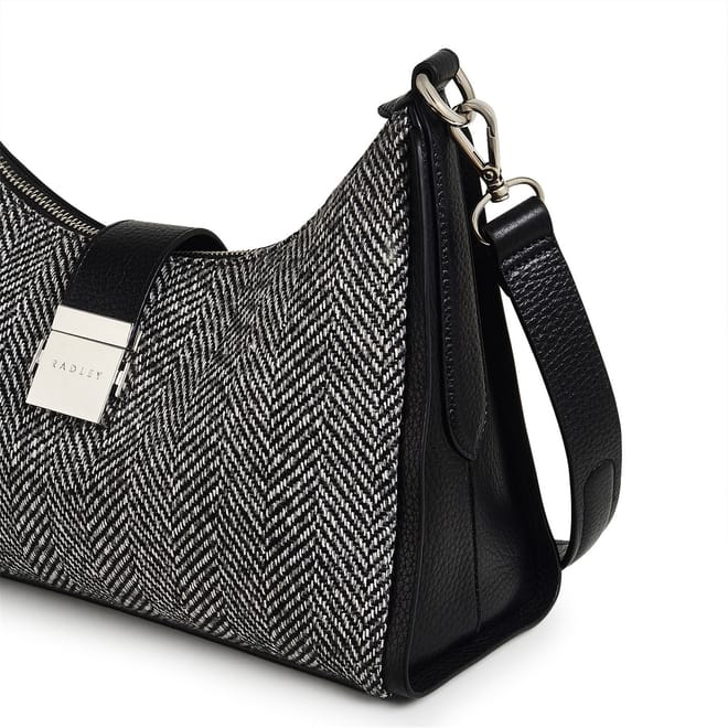 Making great bags is our thing. And Sloane Street is a prime example. Our ‘90s shoulder bag is updated in a combination of a woven herringbone fabric and grained leather, featuring the same signature branded push-lock tab and inverted seams.
