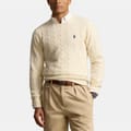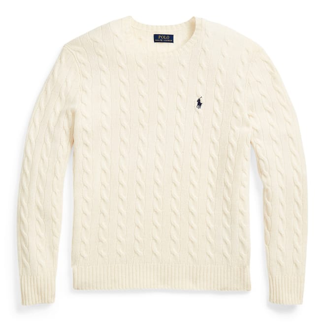 Enhance your collection with this Polo Ralph Lauren Cable Cash Jumper. Constructed with a ribbed crew neckline and long sleeves for a classic look, it features elasticated hems for a comfortable fit. This jumper is a solid colouring throughout in a cable knit design with a signature logo to the chest and is complete with Polo Ralph Lauren branding. -