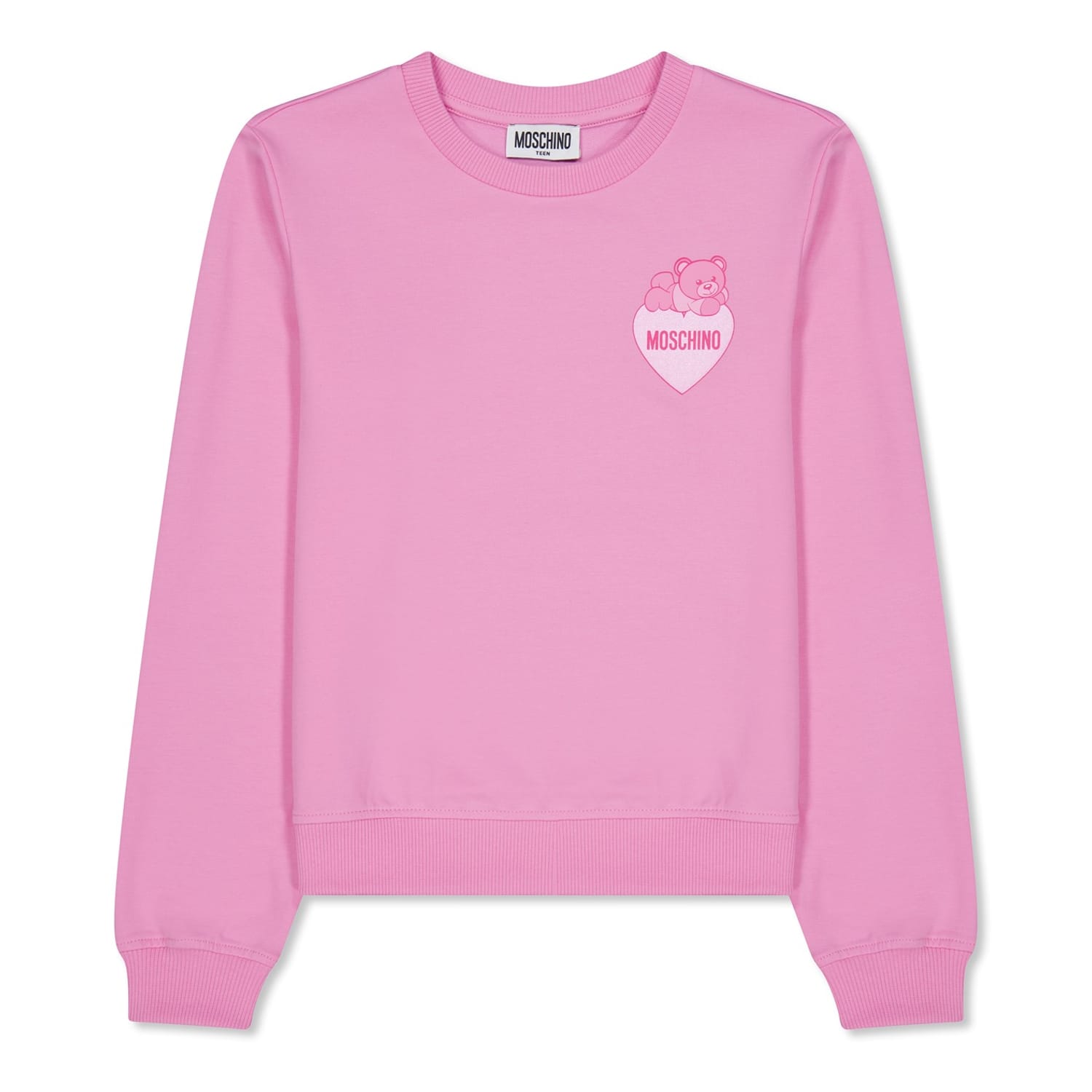 This Moschino sweater for juniors features a charming heart graphic and logo embellishment. It boasts a crew neck and long sleeves with ribbed cuffs for a regular fit. Perfect for adding a playful touch to any wardrobe, the ribbed collar enhances its cosy appeal, ensuring both style and comfort. -