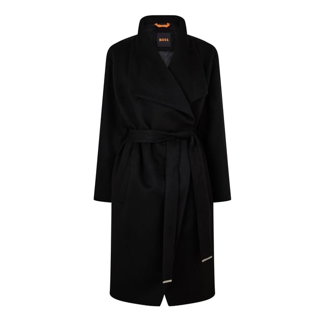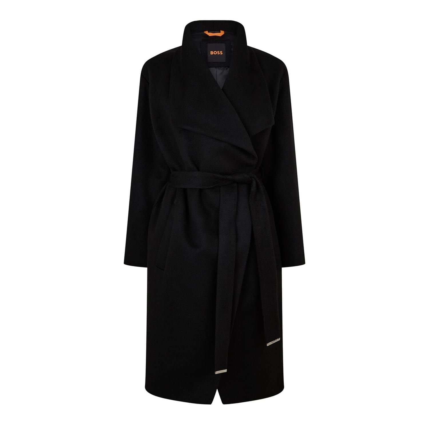 The Boss wrap coat is a sophisticated choice for those seeking style and comfort. Crafted in a solid pattern, this jacket features a shawl neck and tie closure, providing a relaxed fit. The shawl collar adds a touch of elegance, while the subtle logo embellishment offers a hint of brand identity. Perfect for layering, this jacket combines modern design with classic elements. -